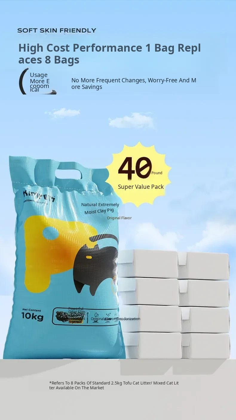 20kg Bentonite Cat Litter - Dust-Free, Clumping, Odor Control - Free Shipping! Perfect for Your Feline Friend - Includes 10kg and 20kg Options!