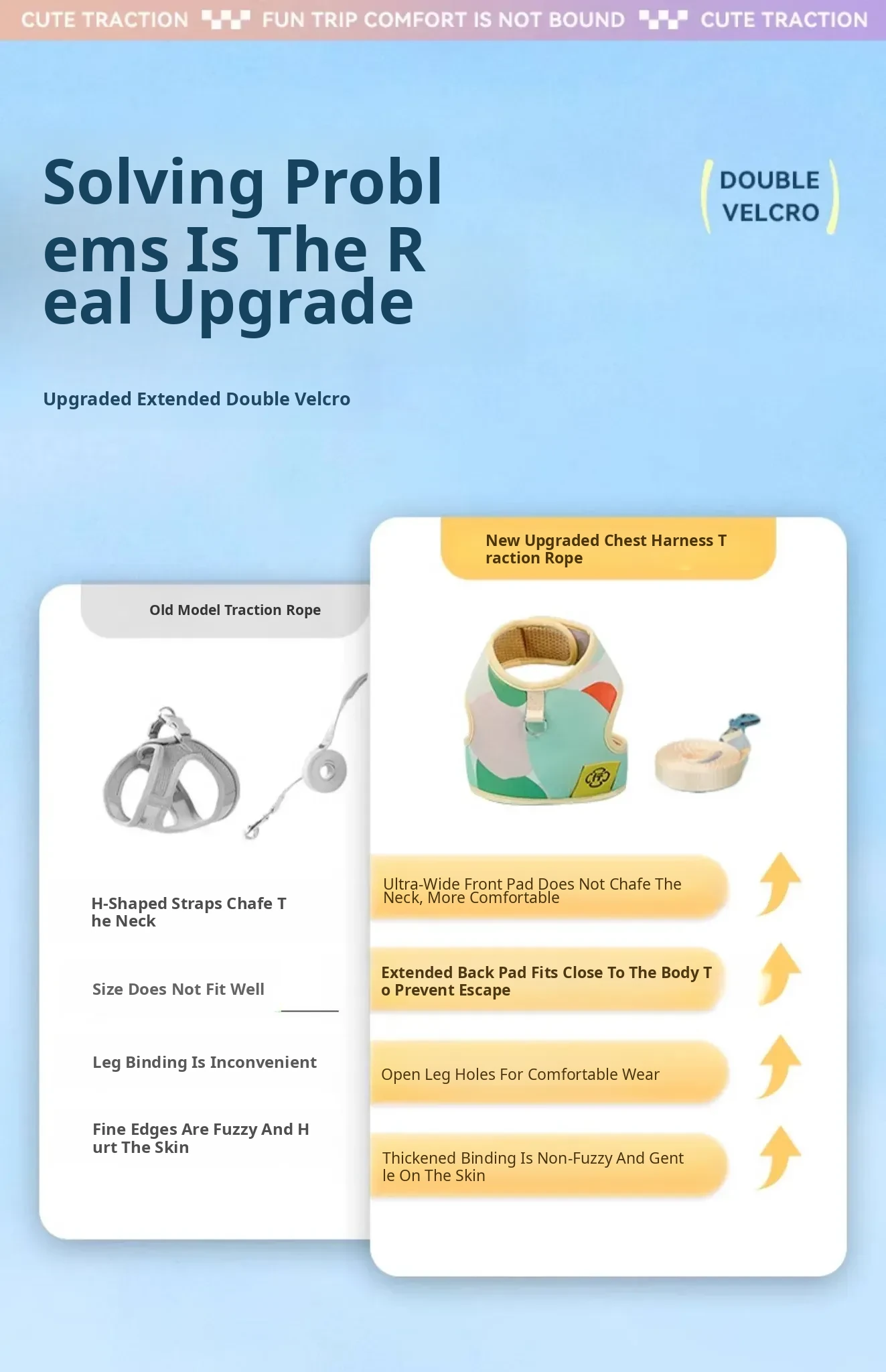 S - Small Size (1.5-3kg) Upgraded with Double Velcro Straps for Enhanced Safety and Escape Prevention