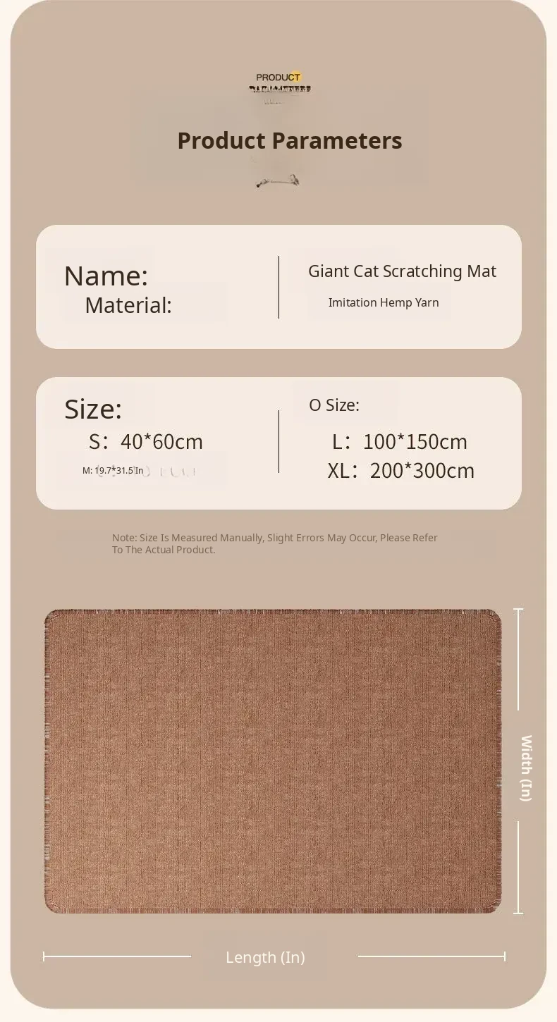 Brown Sisal Cat Scratching Pad XL Size [78.74in*118.11in]