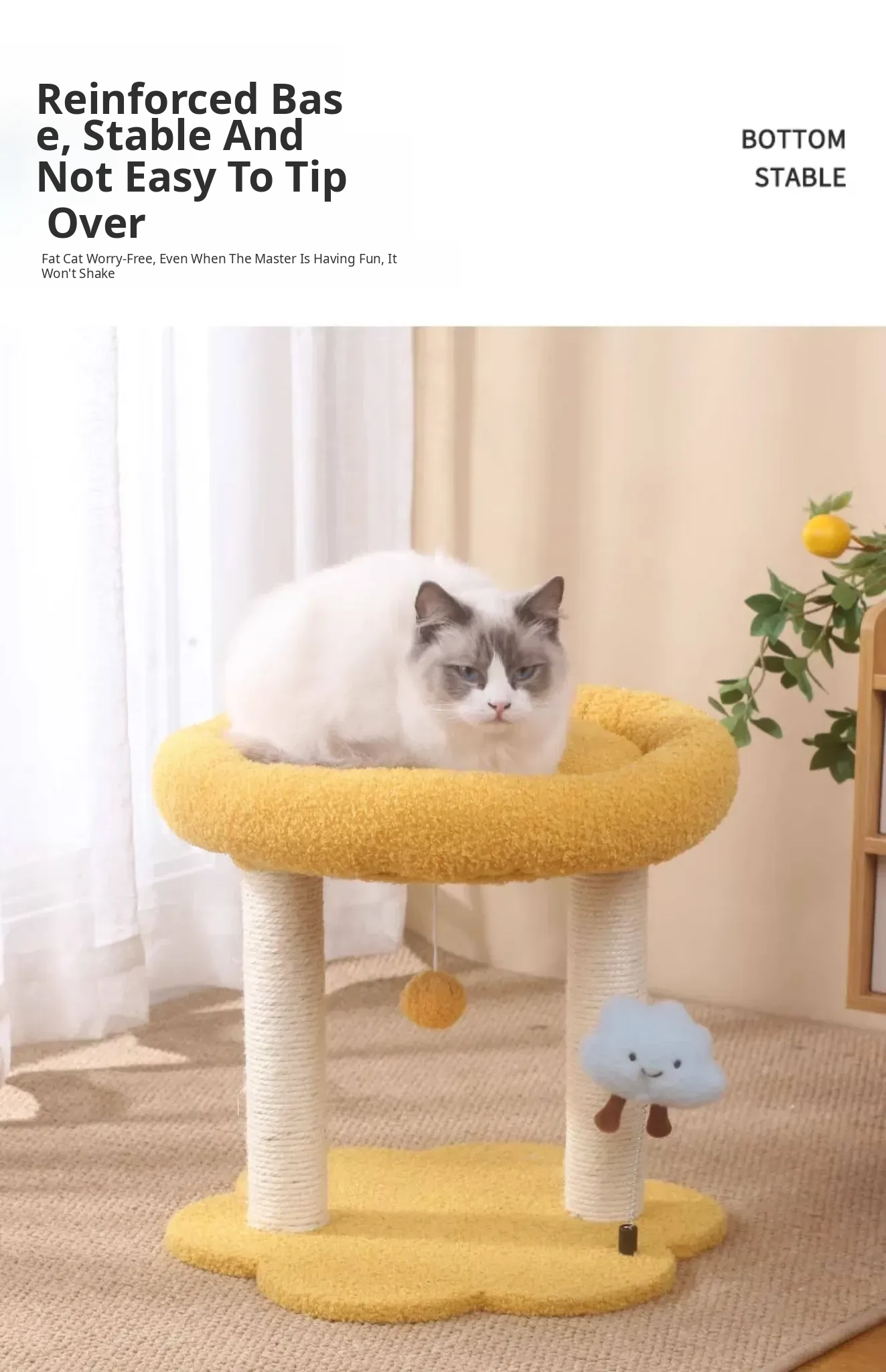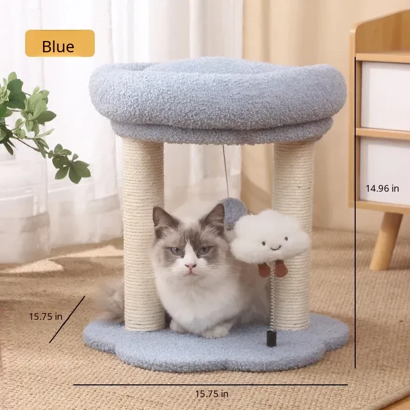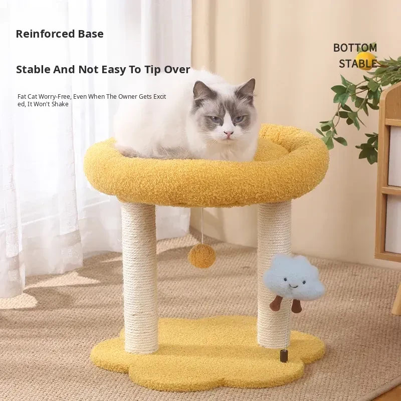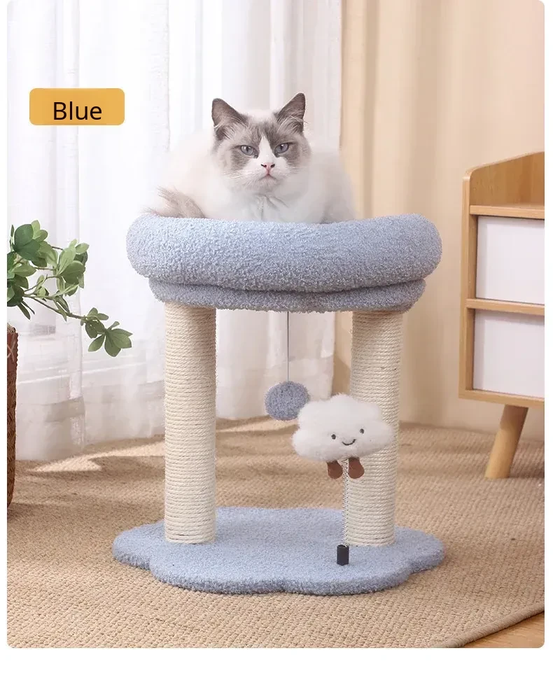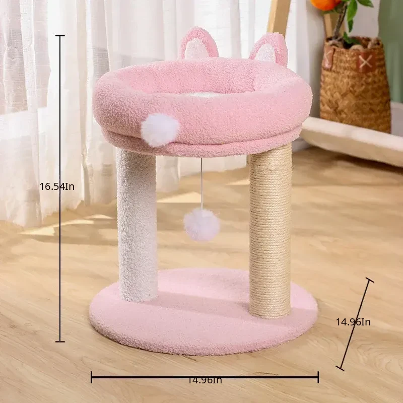 All-in-One Cat Tree with Scratching Post and Cozy Bed – Versatile Seasonal Jump Platform and Climbing Column for Small Cats – Space-Saving Cat Viewing Tower