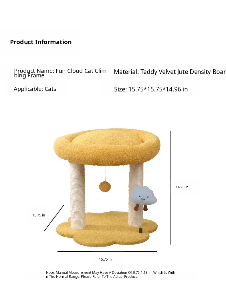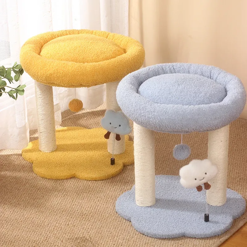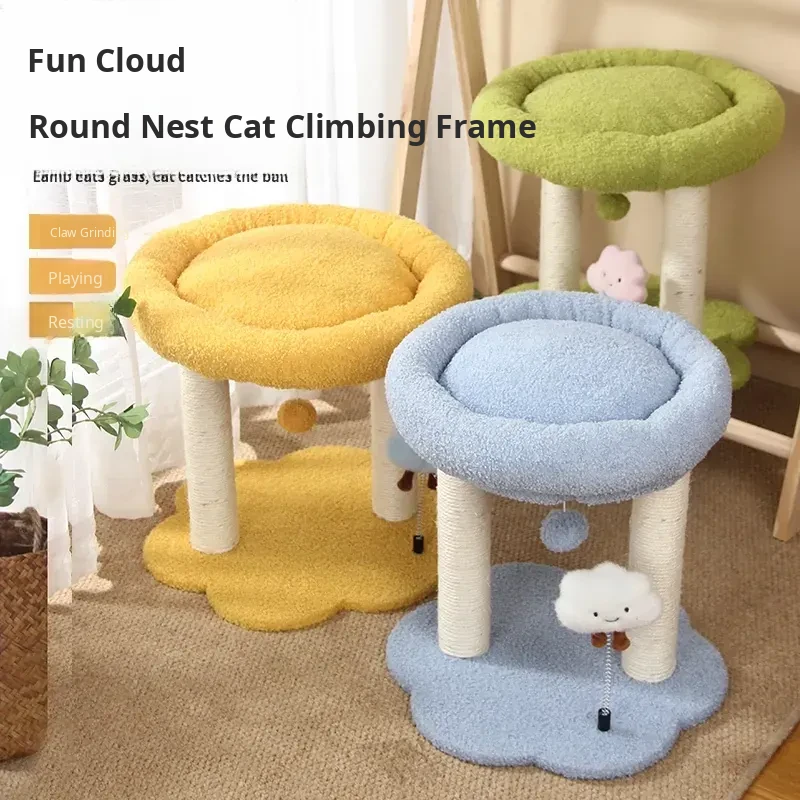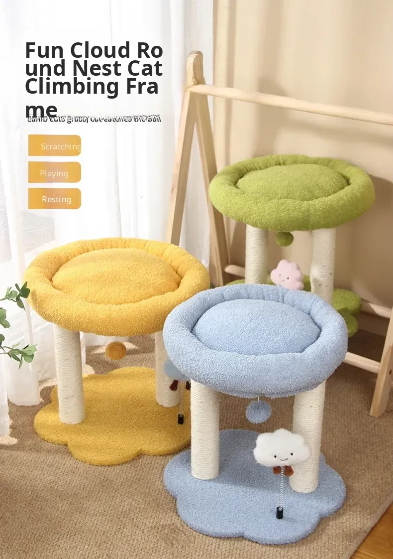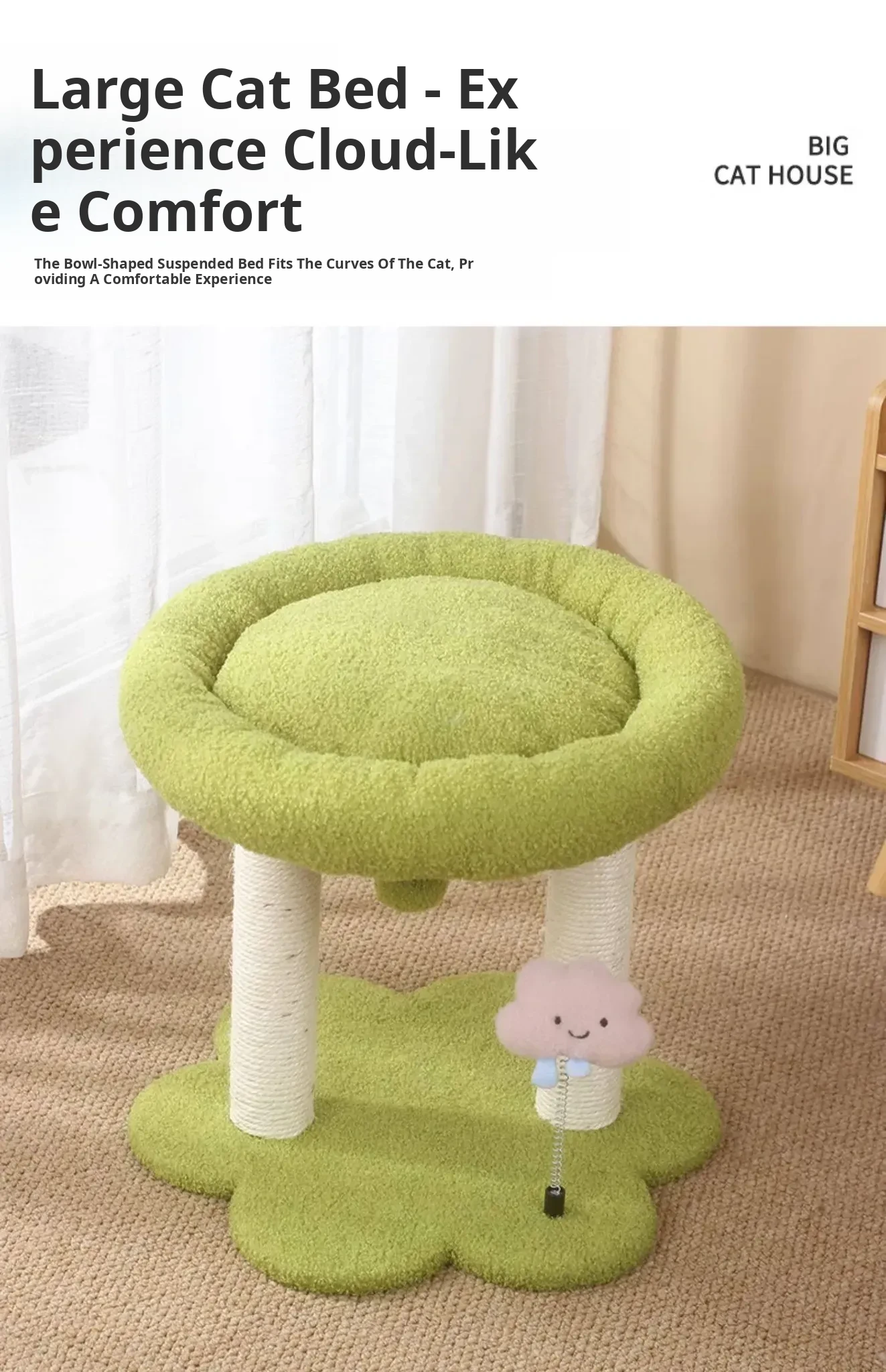 All-in-One Cat Tree with Scratching Post and Cozy Bed – Versatile Seasonal Jump Platform and Climbing Column for Small Cats – Space-Saving Cat Viewing Tower