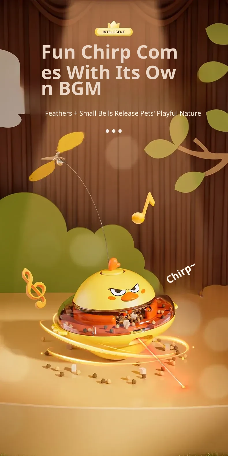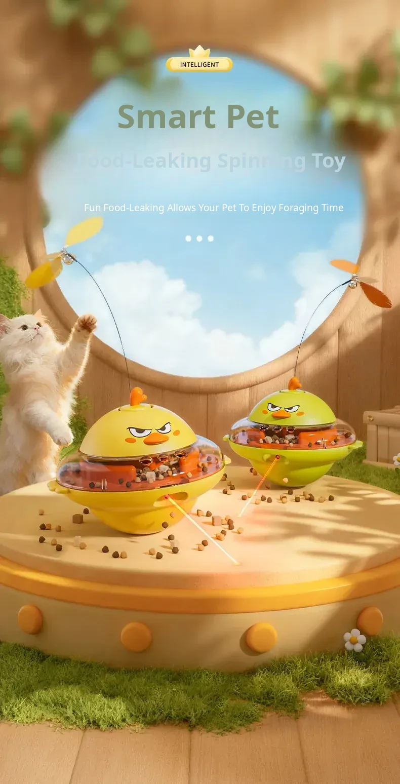 Yellow ⭐ Music Type [Roly-Poly Food Leakage Toy/Laser Cat Teasing]