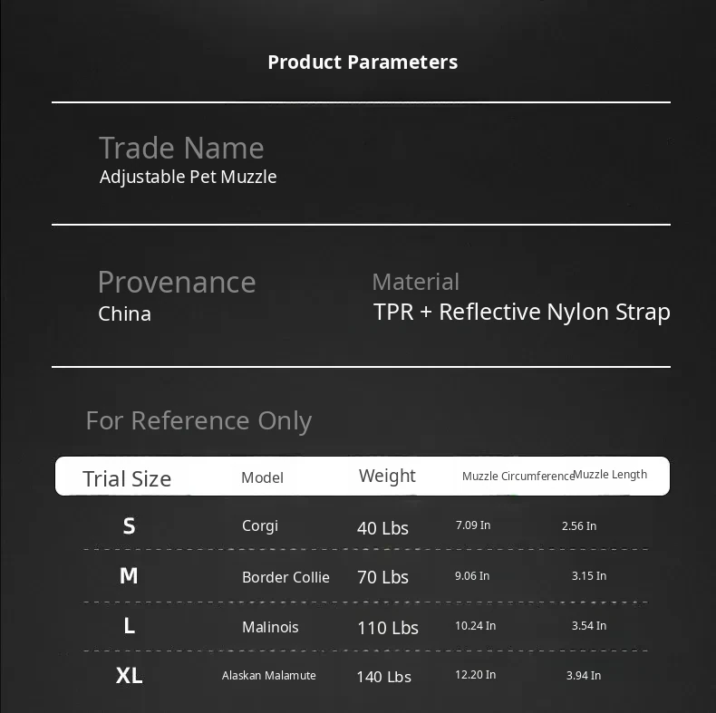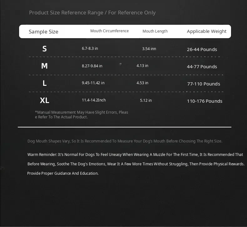 XL (Mouth Circumference 11.42in-14.17in, Applicable Weight 25-40kg)