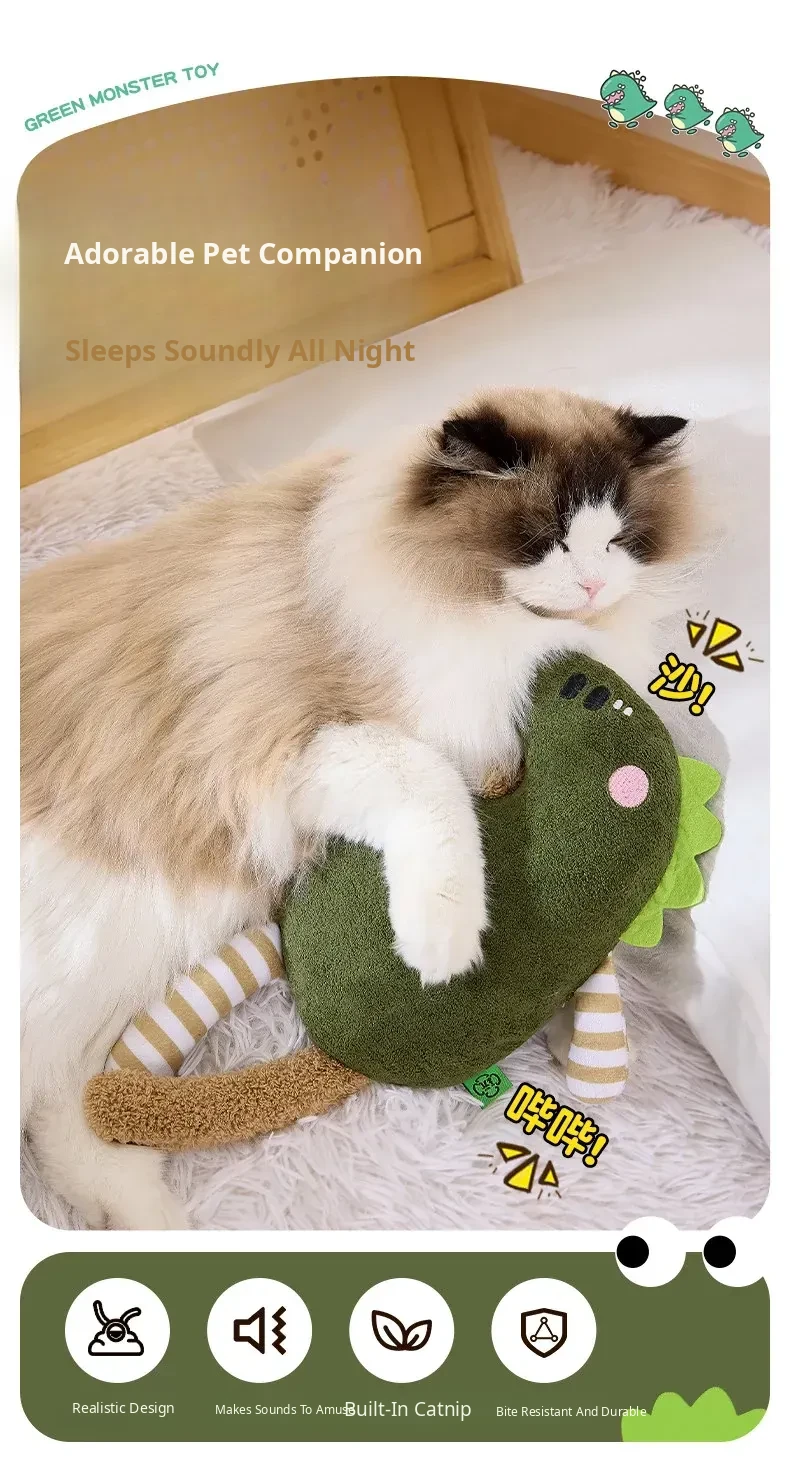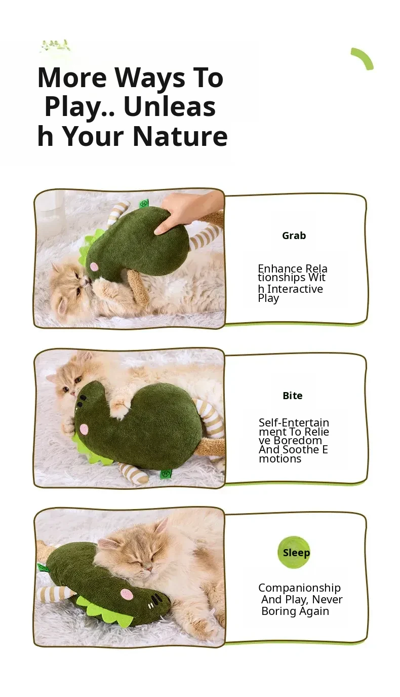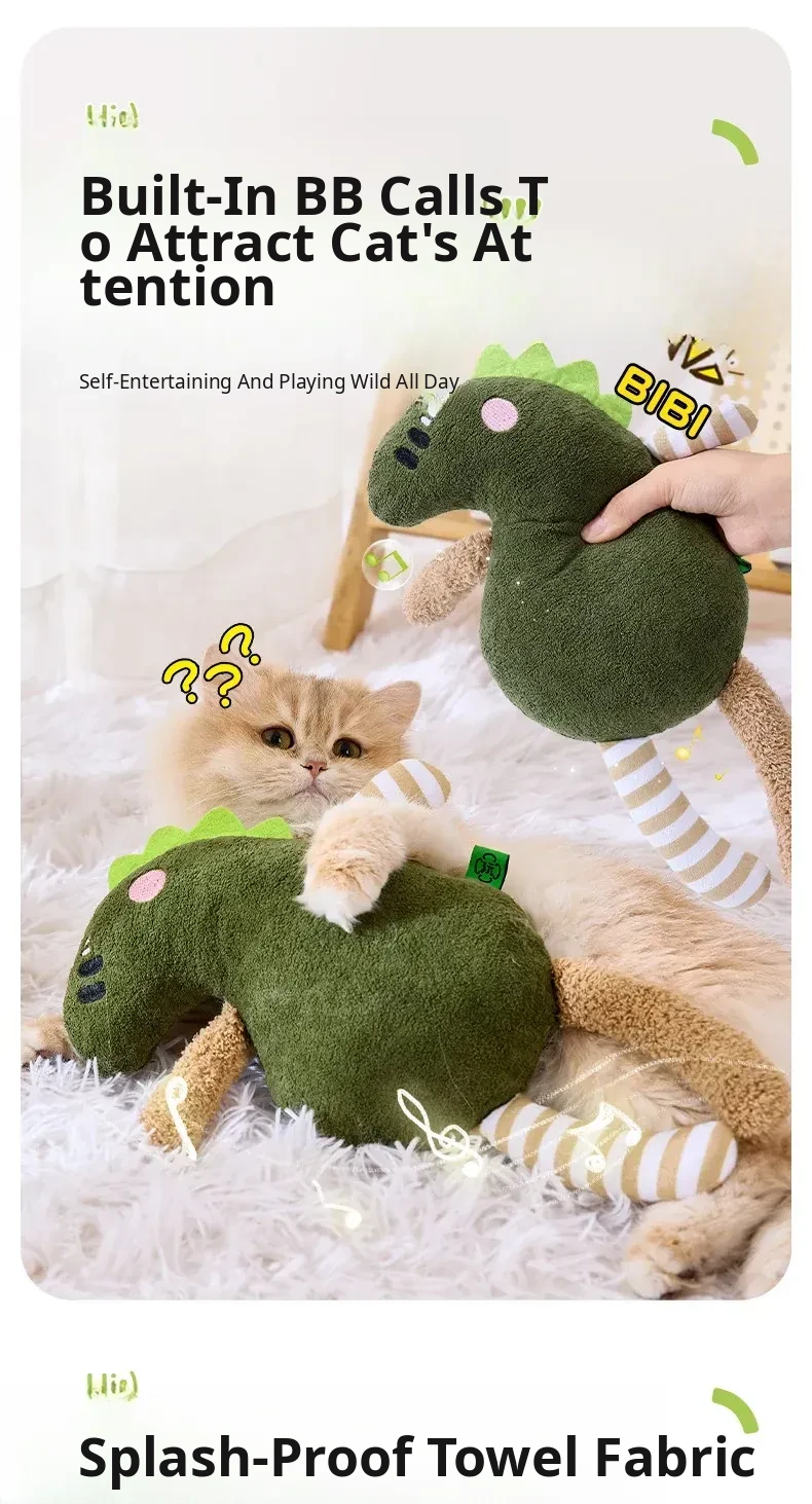 Durable Cat Toy - Interactive Dinosaur for Cats, Perfect for Chewing and Dental Care, Calming Companion, Waterproof and Sound-Emitting Fun to Keep Your Feline Entertained!