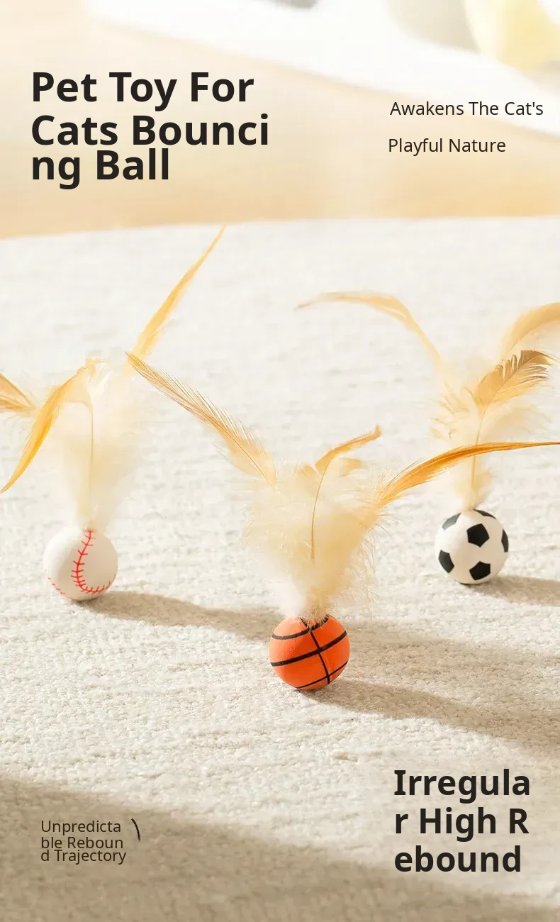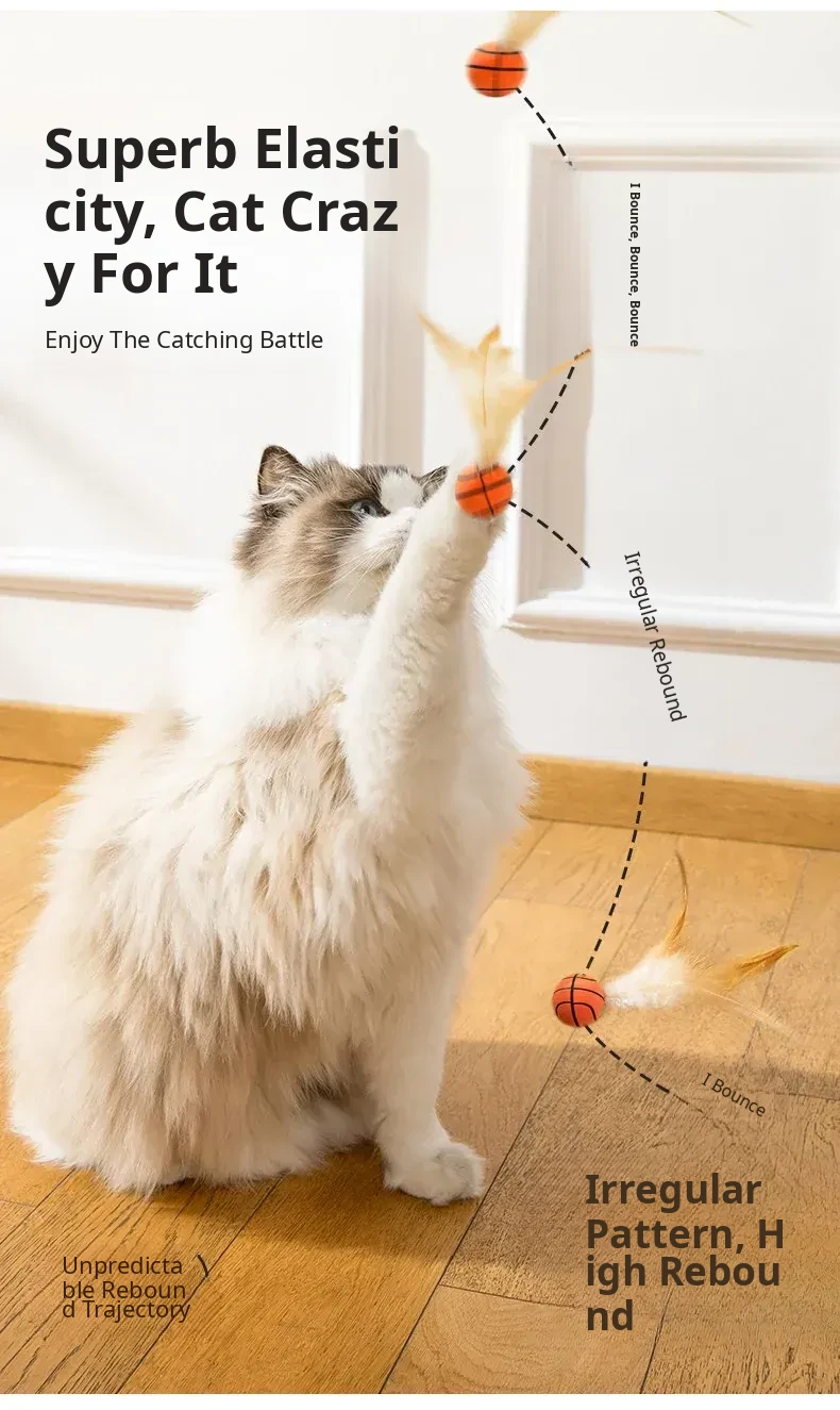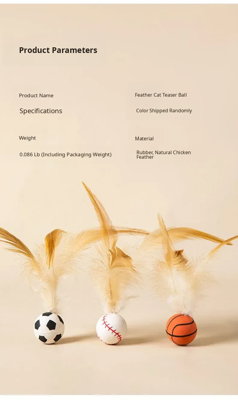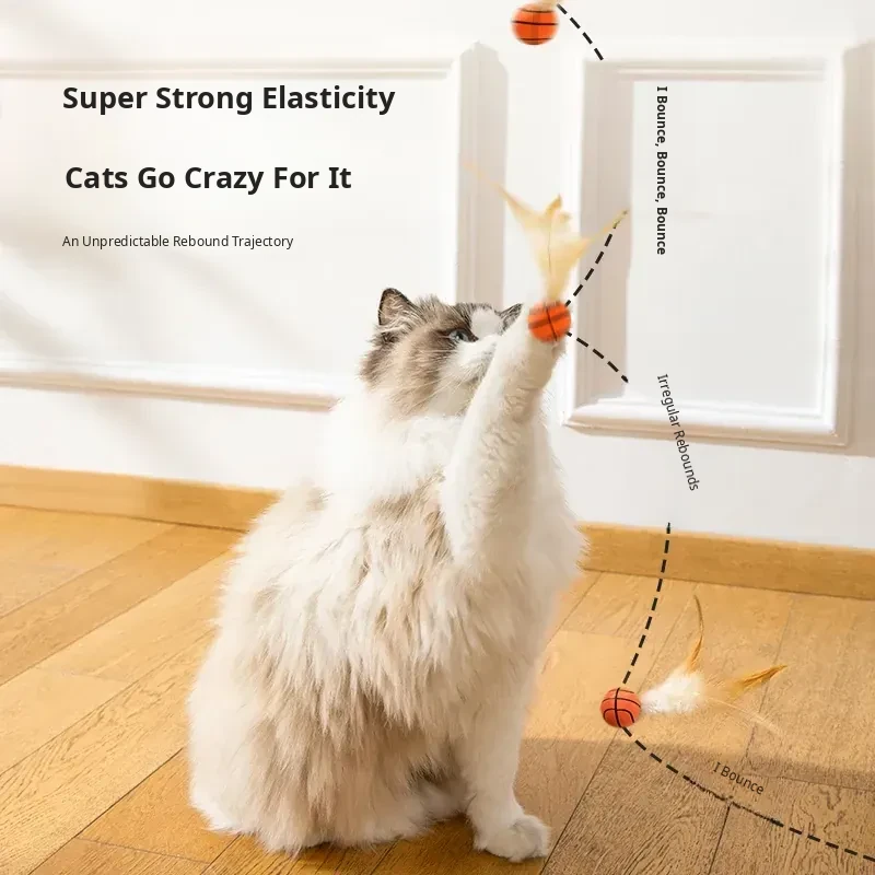 Exciting Cat Toy - Bouncy Ball with Feathers, Perfect for Keeping Cats Active and Entertained! Ideal for Playtime and Energy Release, This New Interactive Cat Wand is a Must-Have for Happy, Healthy Cats!