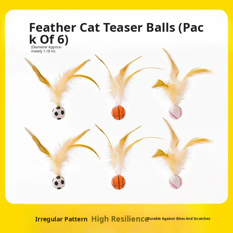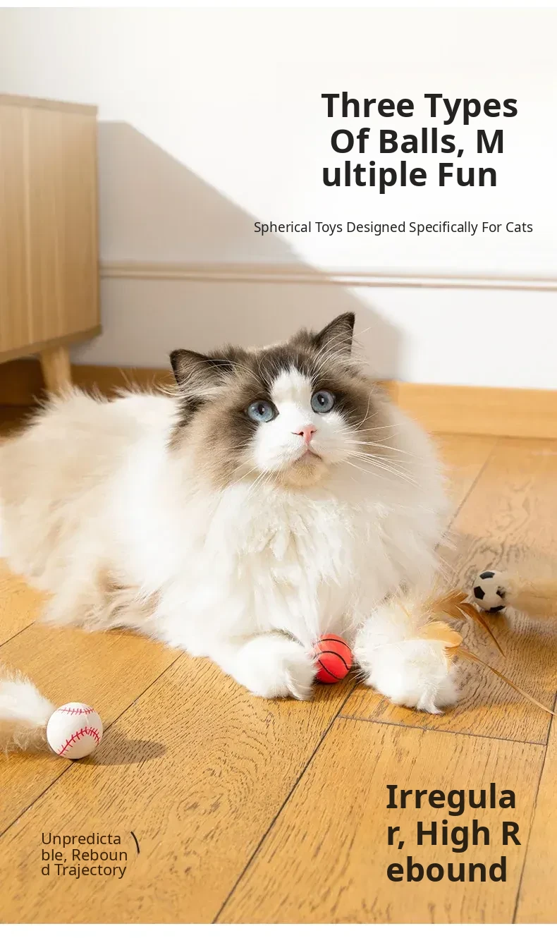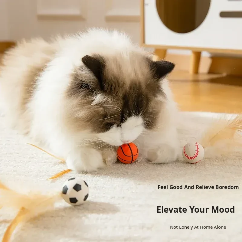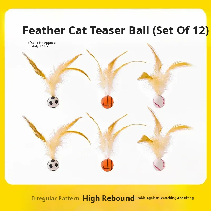 Exciting Cat Toy - Bouncy Ball with Feathers, Perfect for Keeping Cats Active and Entertained! Ideal for Playtime and Energy Release, This New Interactive Cat Wand is a Must-Have for Happy, Healthy Cats!