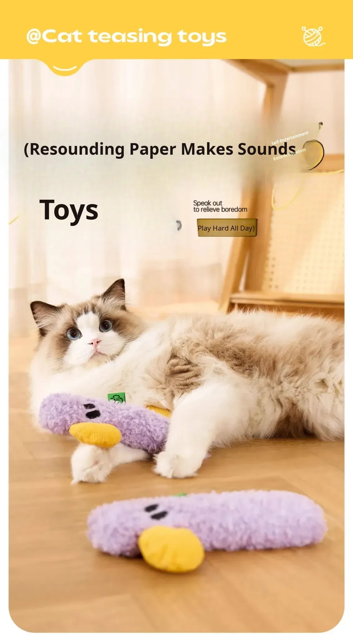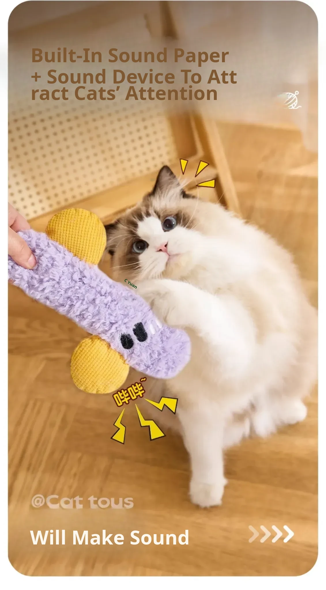 Exciting Cat Toy: Interactive Noisemaking Teaser Wand with Crinkle Paper - Perfect for Keeping Your Kitten Entertained and Satisfied! Ideal for Dental Care and Playtime Fun!