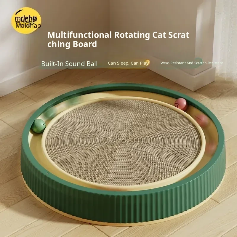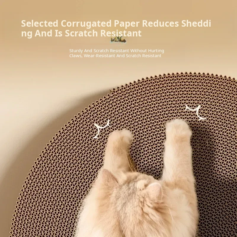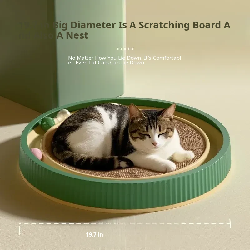 Extra-Large Round Cat Scratching Pad with Ball - Durable, Non-Shedding, and Scratch-Resistant! A Perfect Cat Bed and Self-Entertainment Toy for Hours of Fun and Engagement.