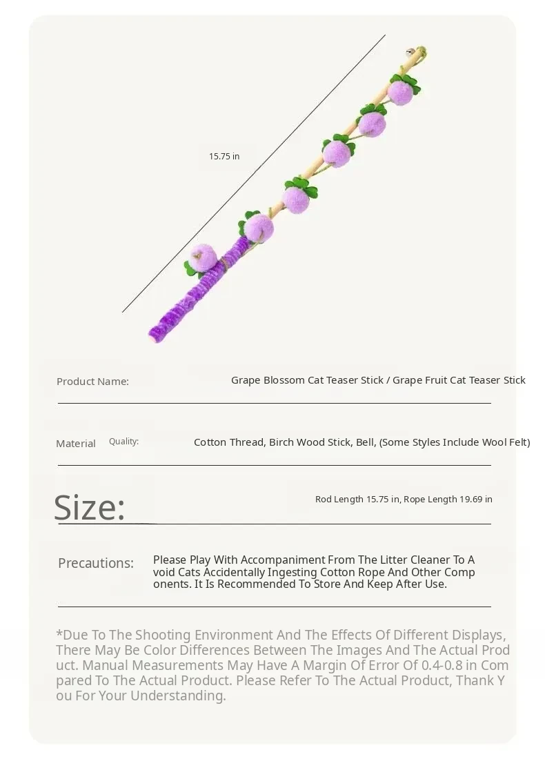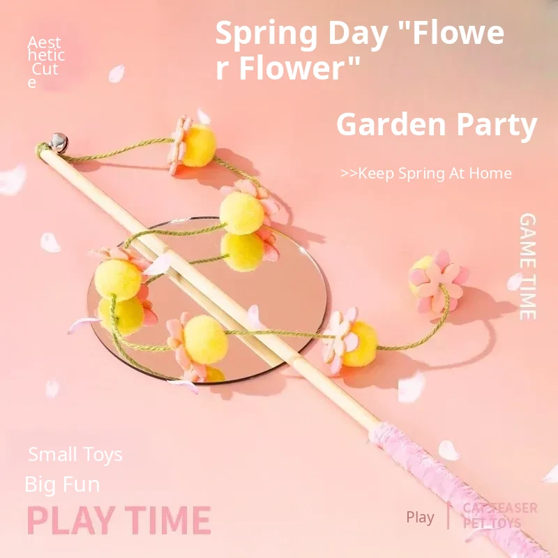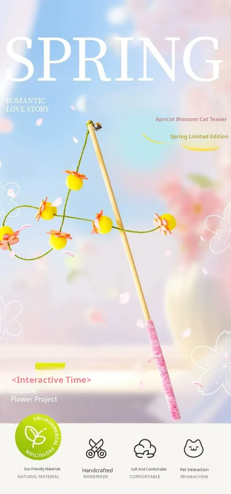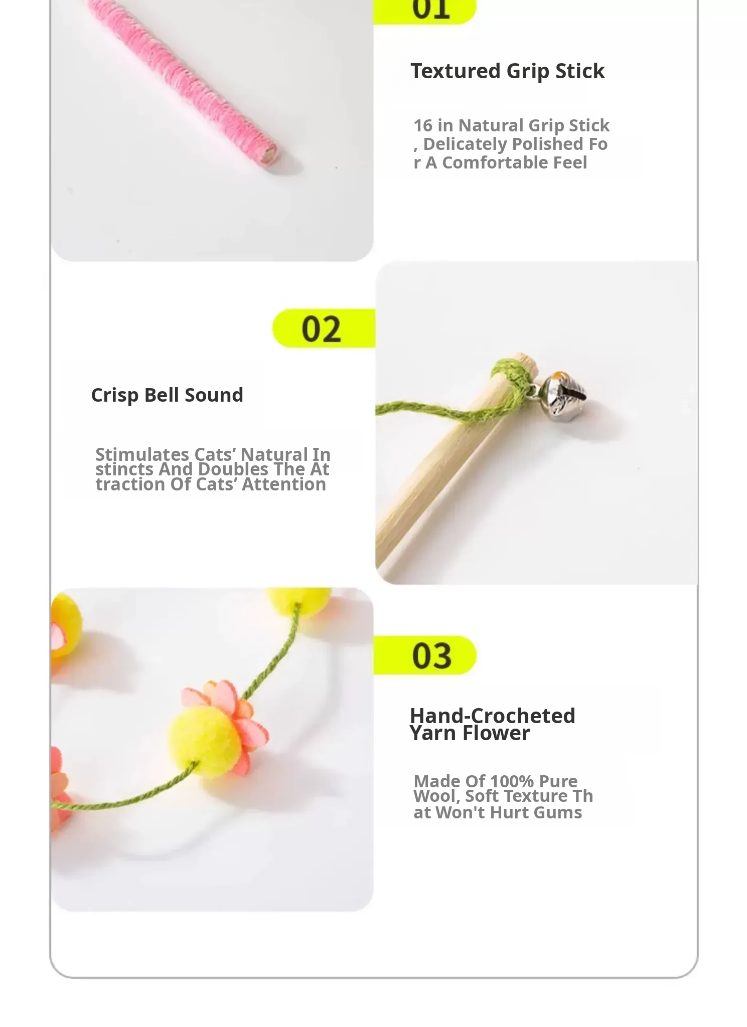 "Interactive Cat Teaser Wand - Durable Solid Wood Long Rod, Perfect for Engaging Kittens and Cats | Fun Exercise and Entertainment Toy to Keep Your Feline Friends Active and Happy!"