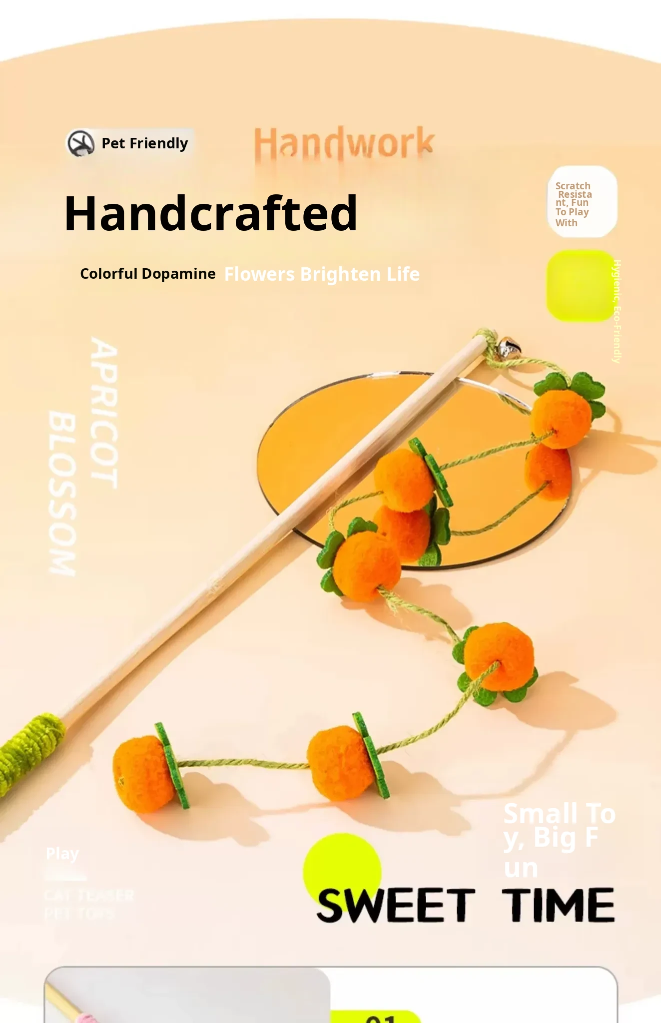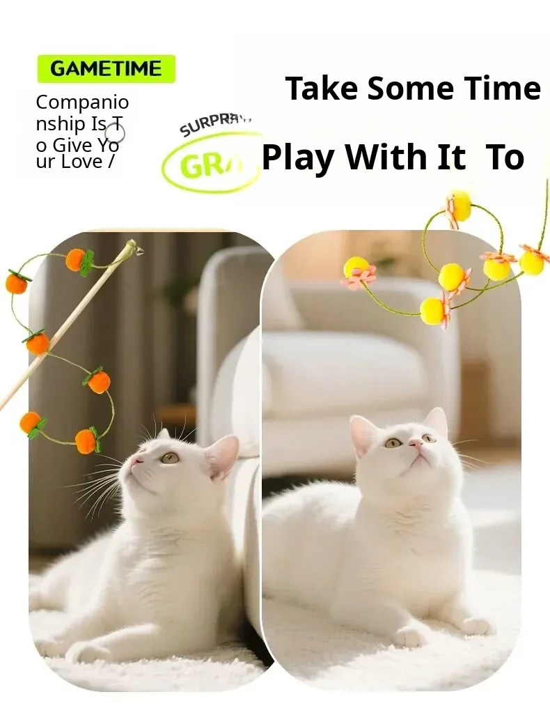 ⭐Apricot Fruit + Suction Cup Multifunctional Cat Teaser Wand
