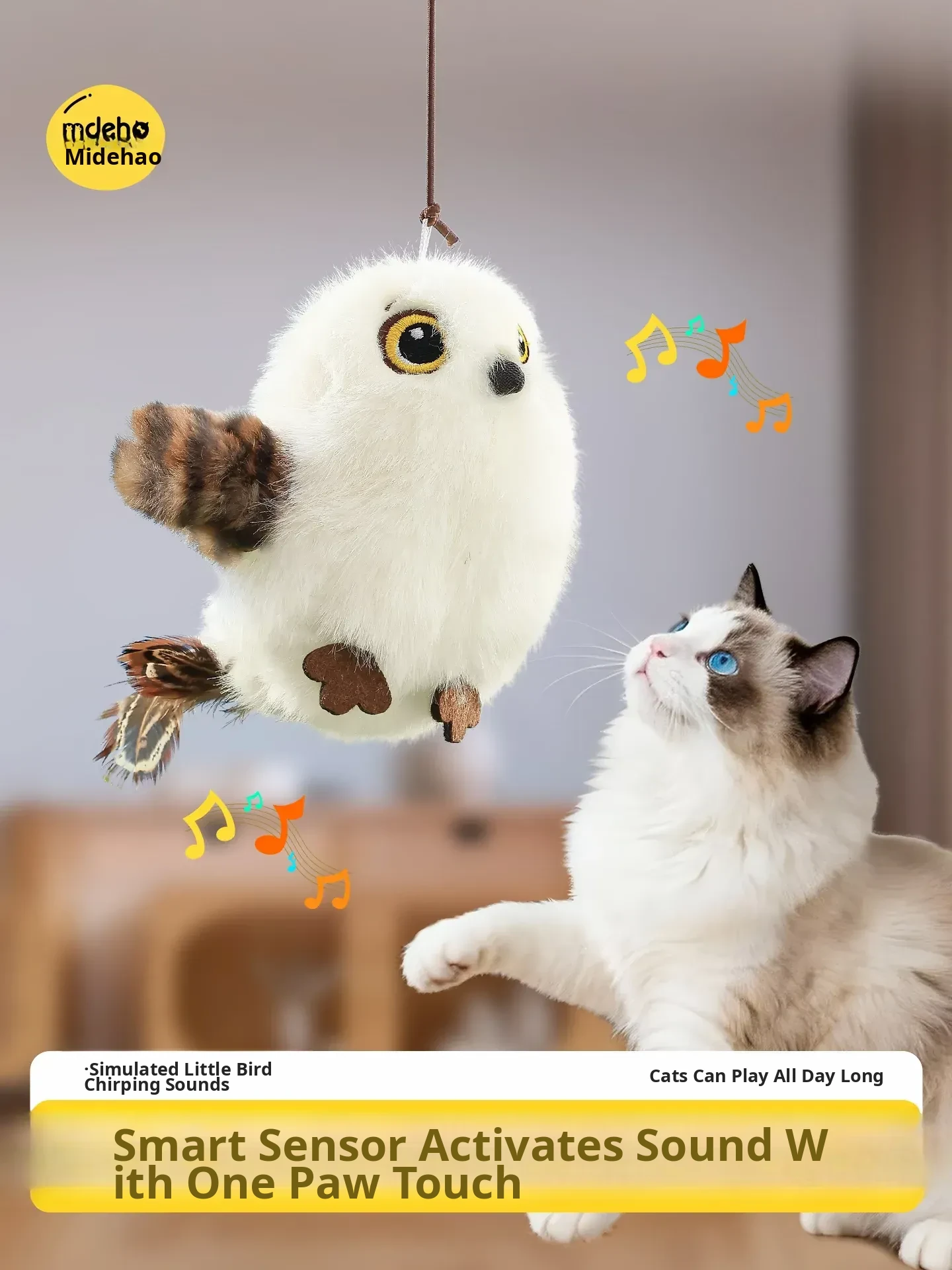 Interactive Cat Toy - Fluffy Chirping Bird with Realistic Sounds, Automatic Teaser Wand for Self-Entertainment and Energy Release, Perfect for Keeping Your Cat Engaged and Active!