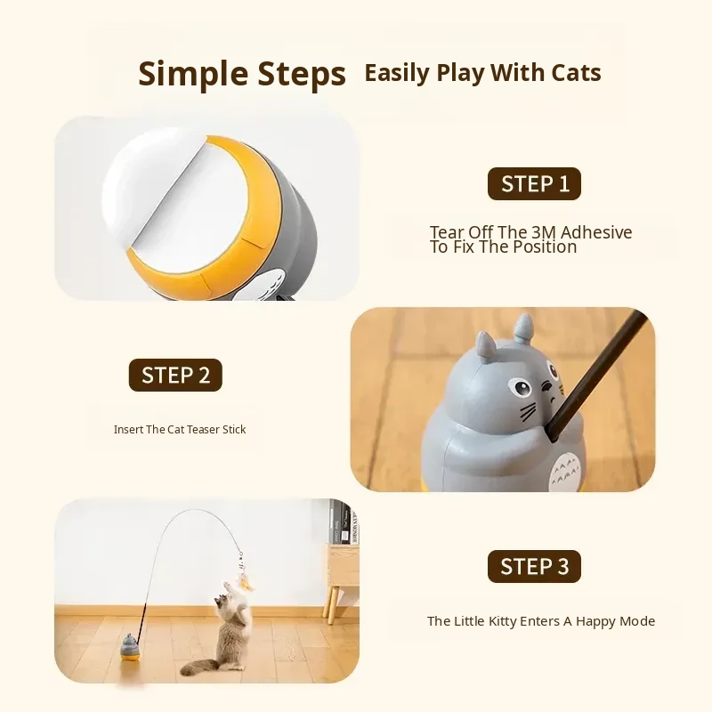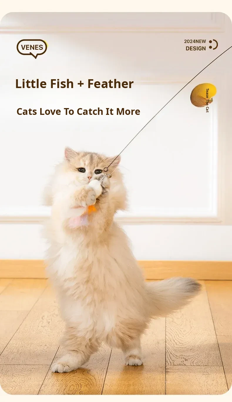 Kitten Fishing Cat Teasing Stick + 3 Replacement Heads [Replace at Any Time]