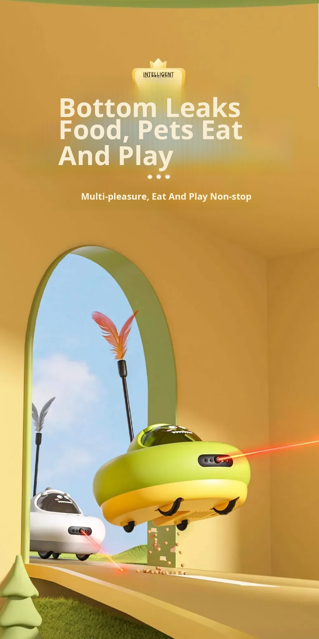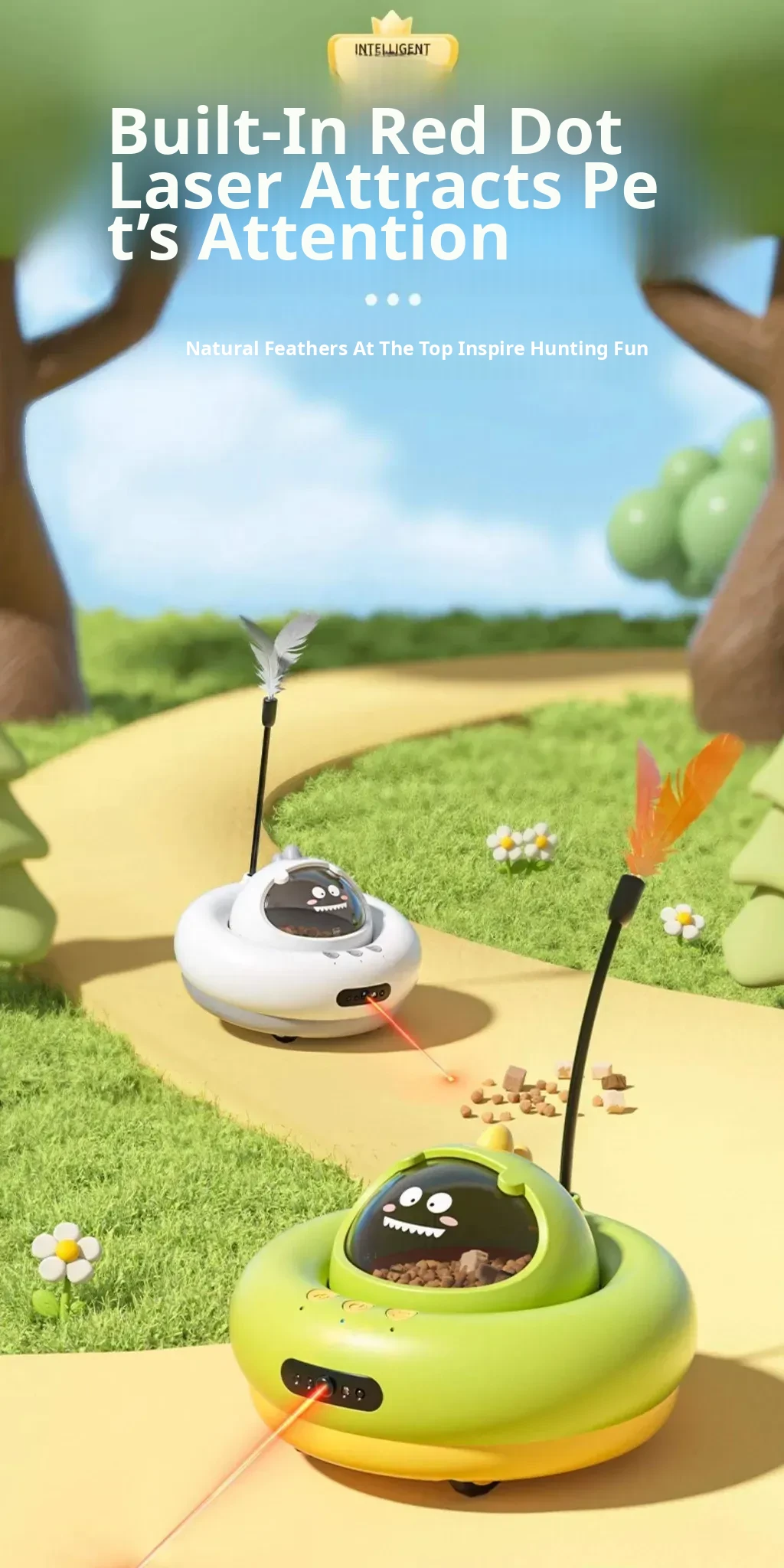 Green Automatic Feeder [30-Second Automatic Dispensing/Laser Pointer Cat Toy]
