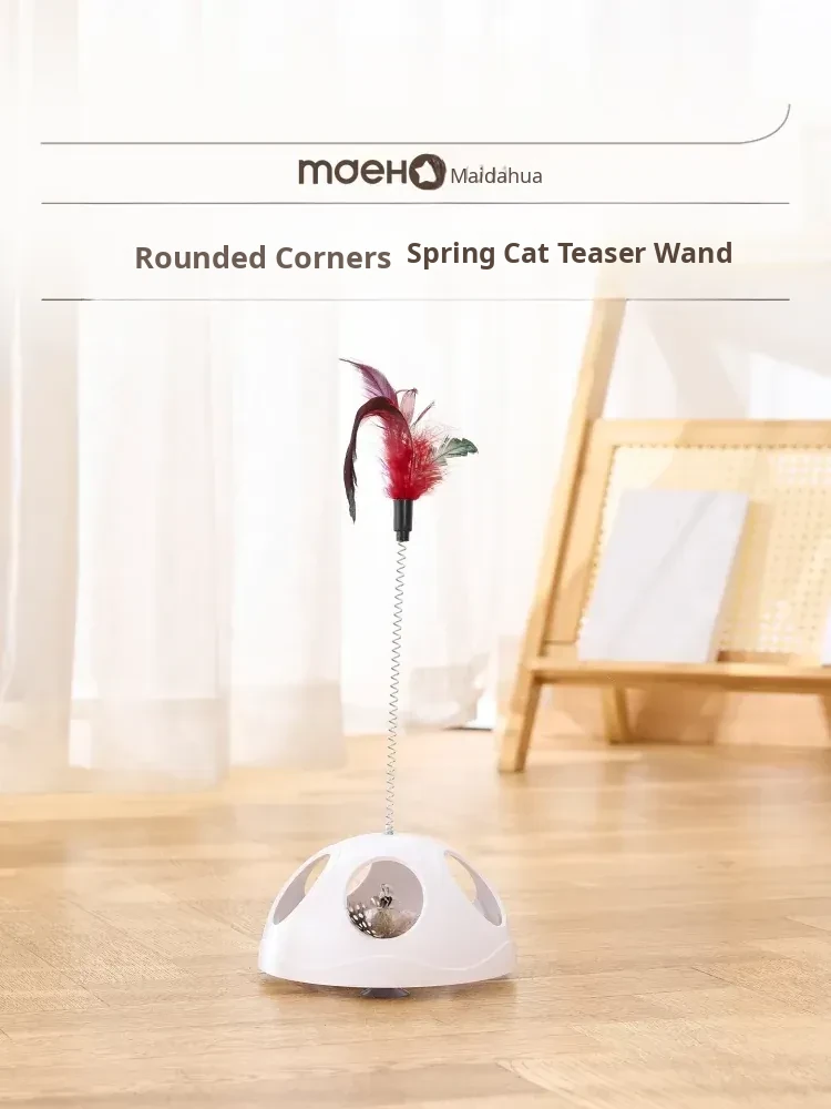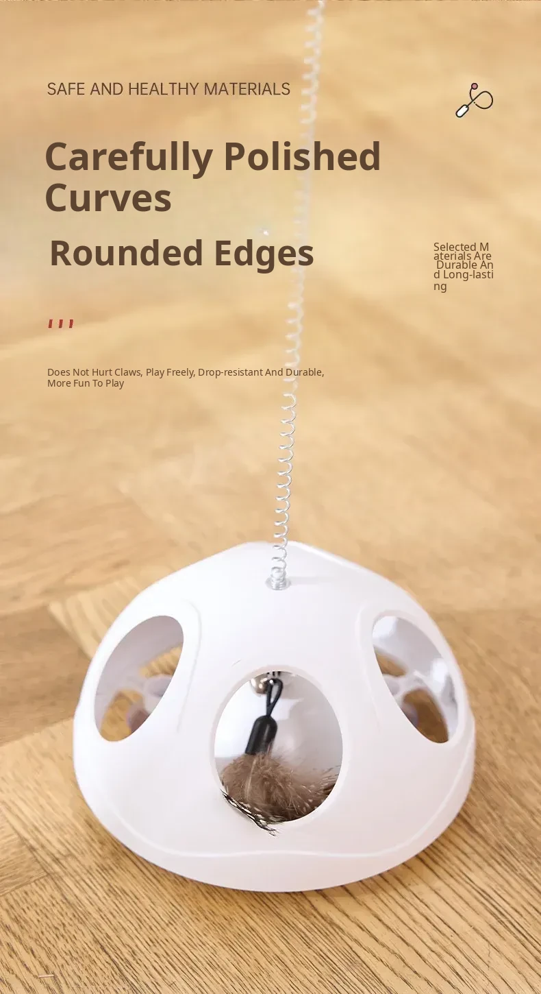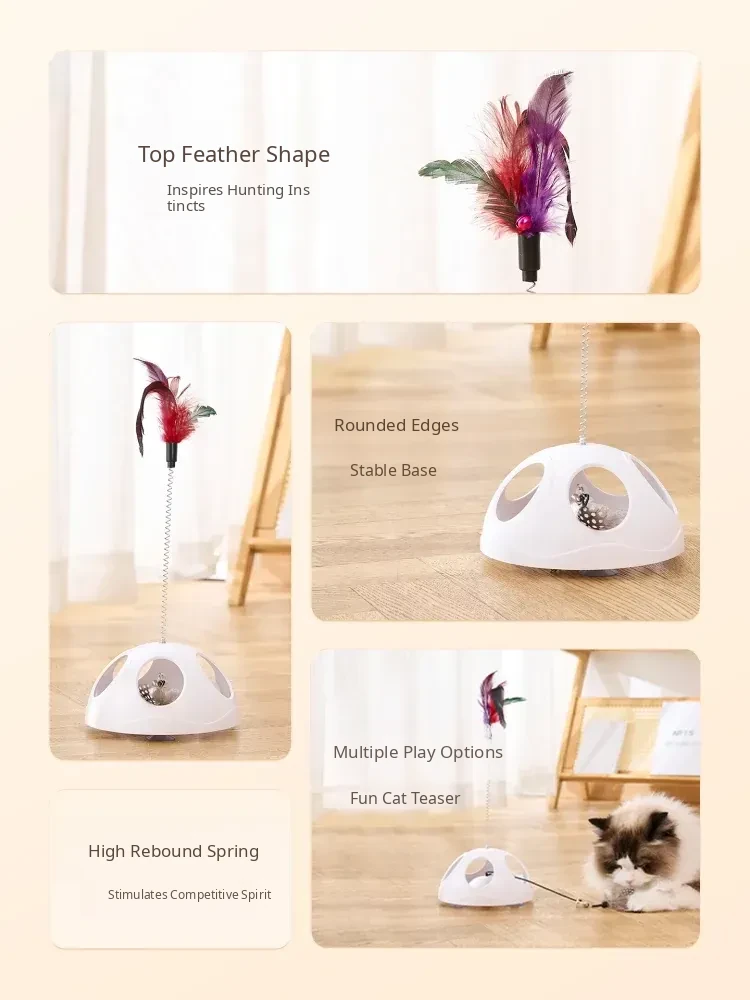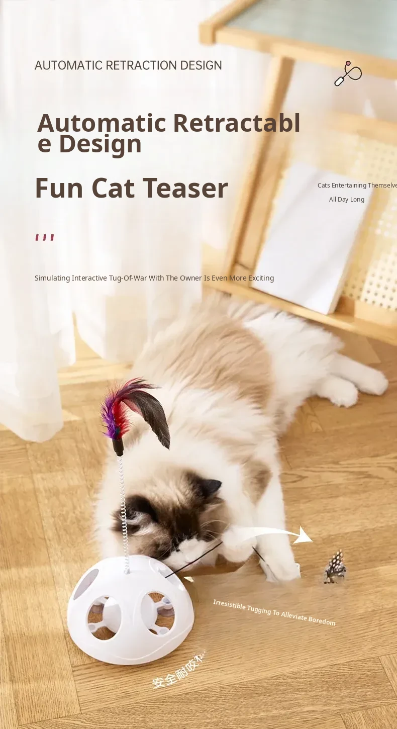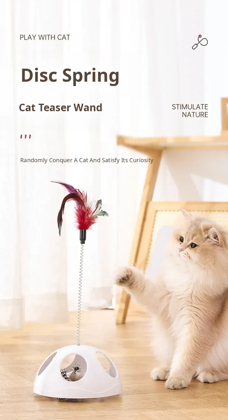 Multi-Functional Suction Cup Spring Cat Teaser Wand [Double the Fun: Pull Toy + Feather Attraction]