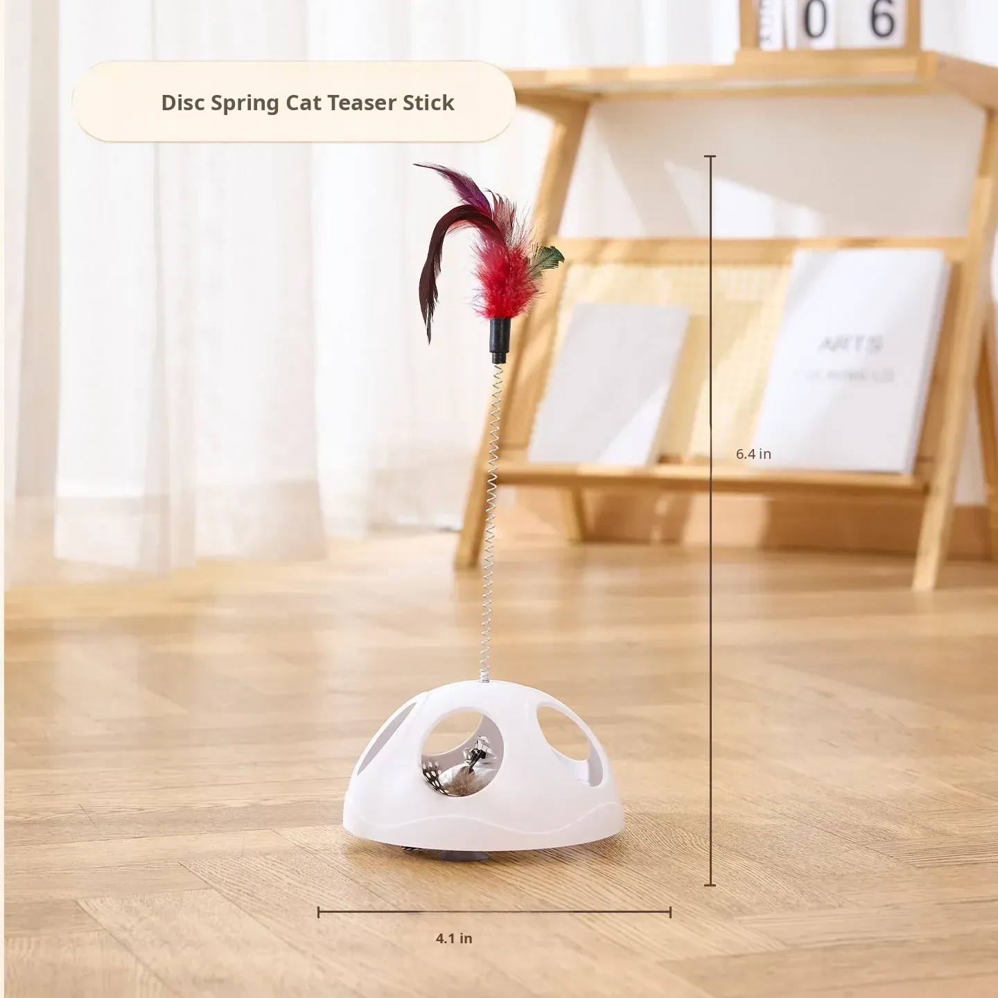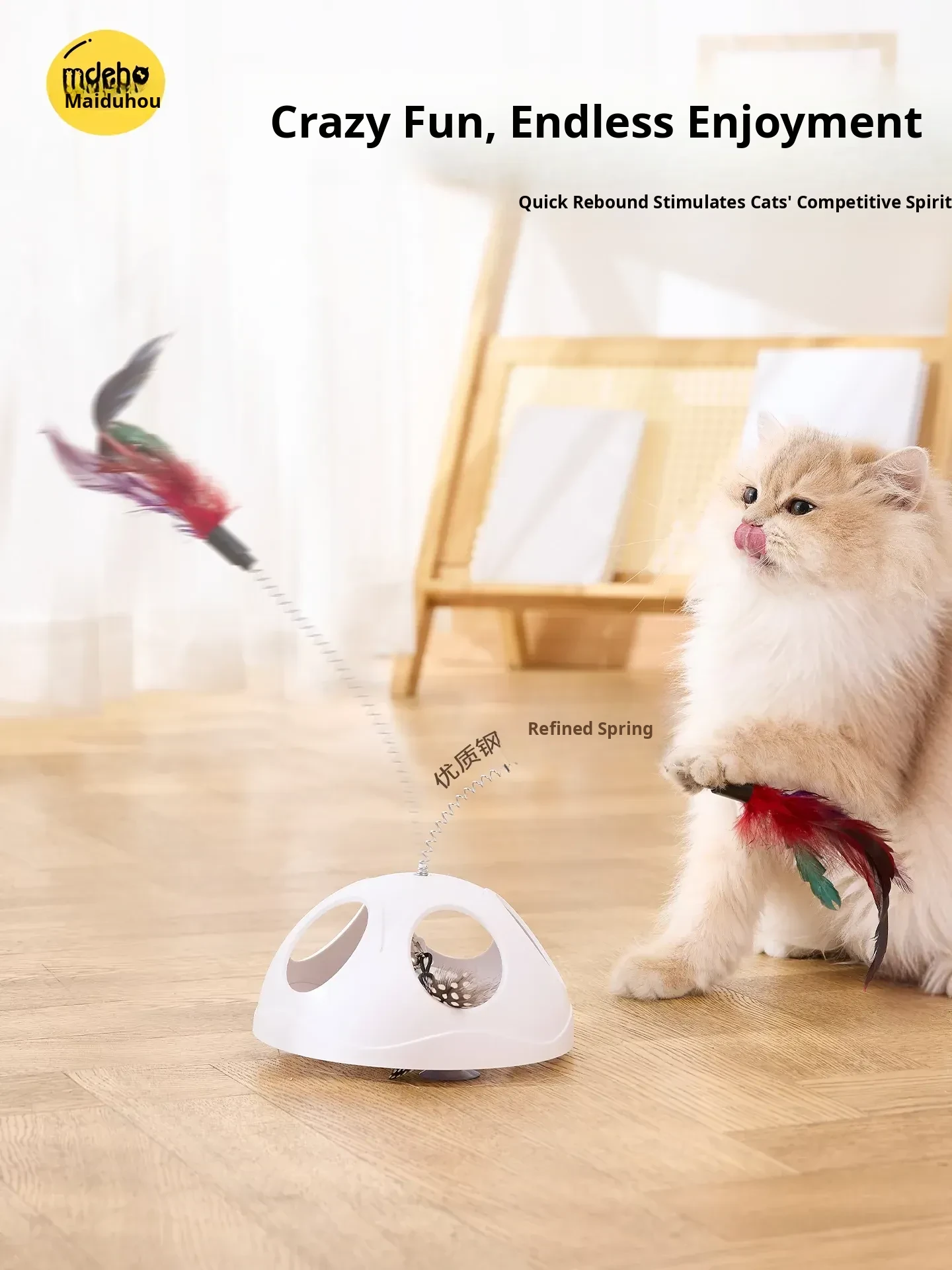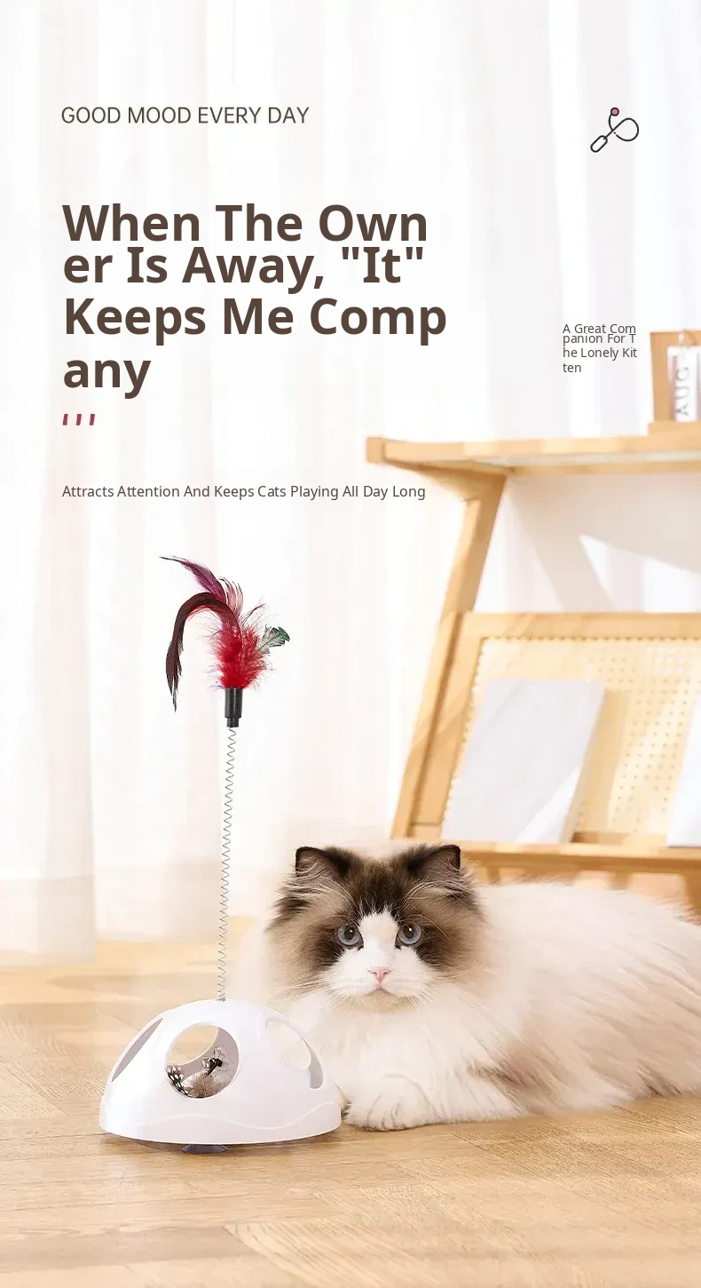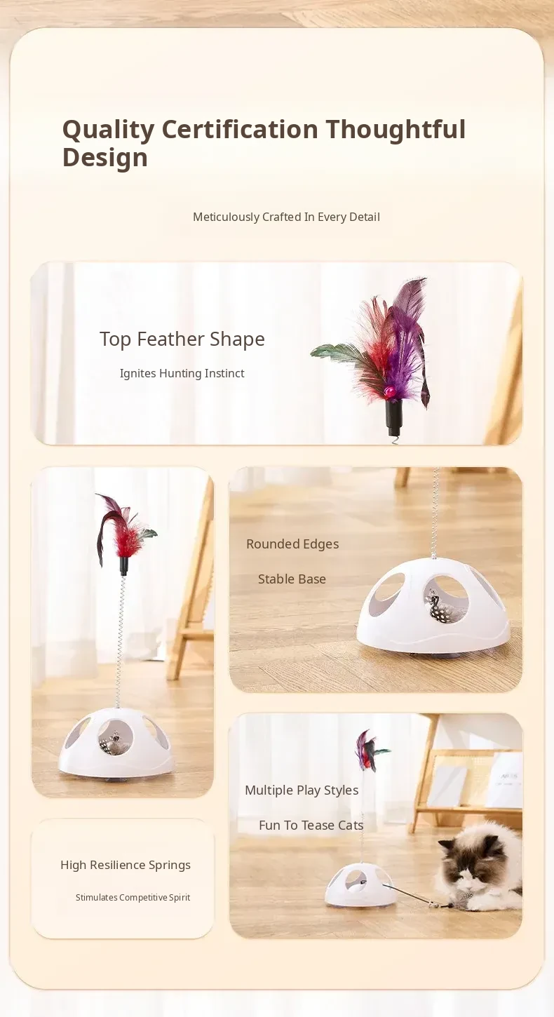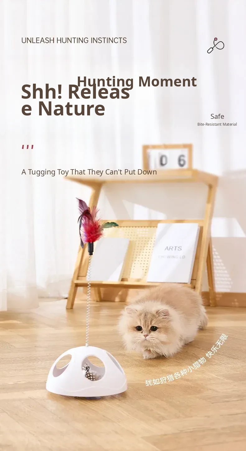 Multi-Functional Suction Cup Spring Cat Teaser Wand [Double the Fun: Pull Toy + Feather Attraction]