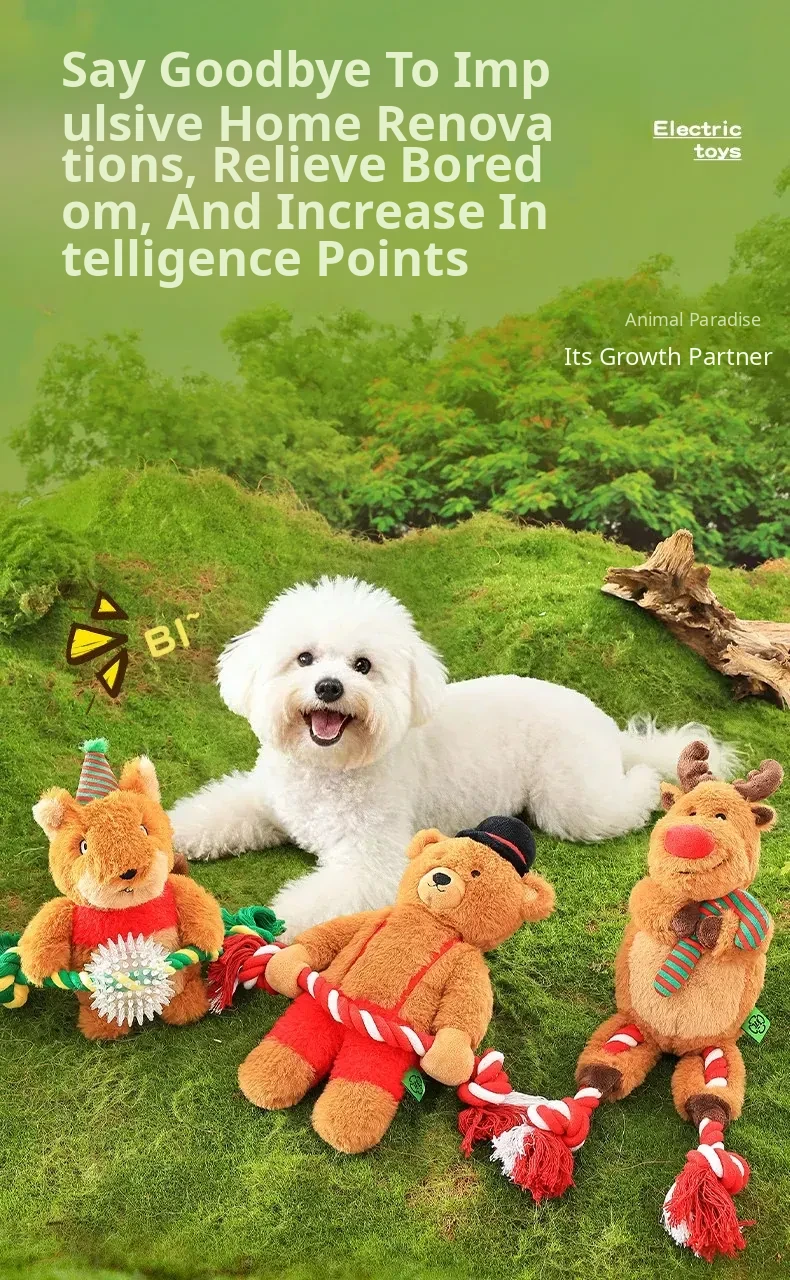 New Year Plush Dog Toy - Chew Rope Knot with Squeaker, Perfect for Keeping Puppies Entertained and Engaged, Durable and Ideal for Energy Release!