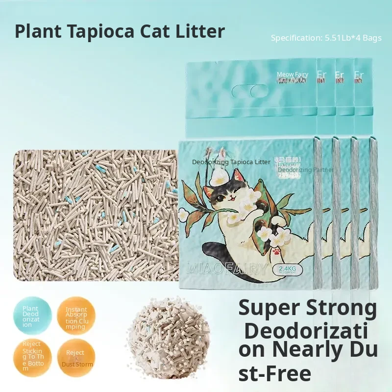 [Super Deodorizing and Non-Stick Bottom] Cassava Mixed Cat Litter 2.4kg*4