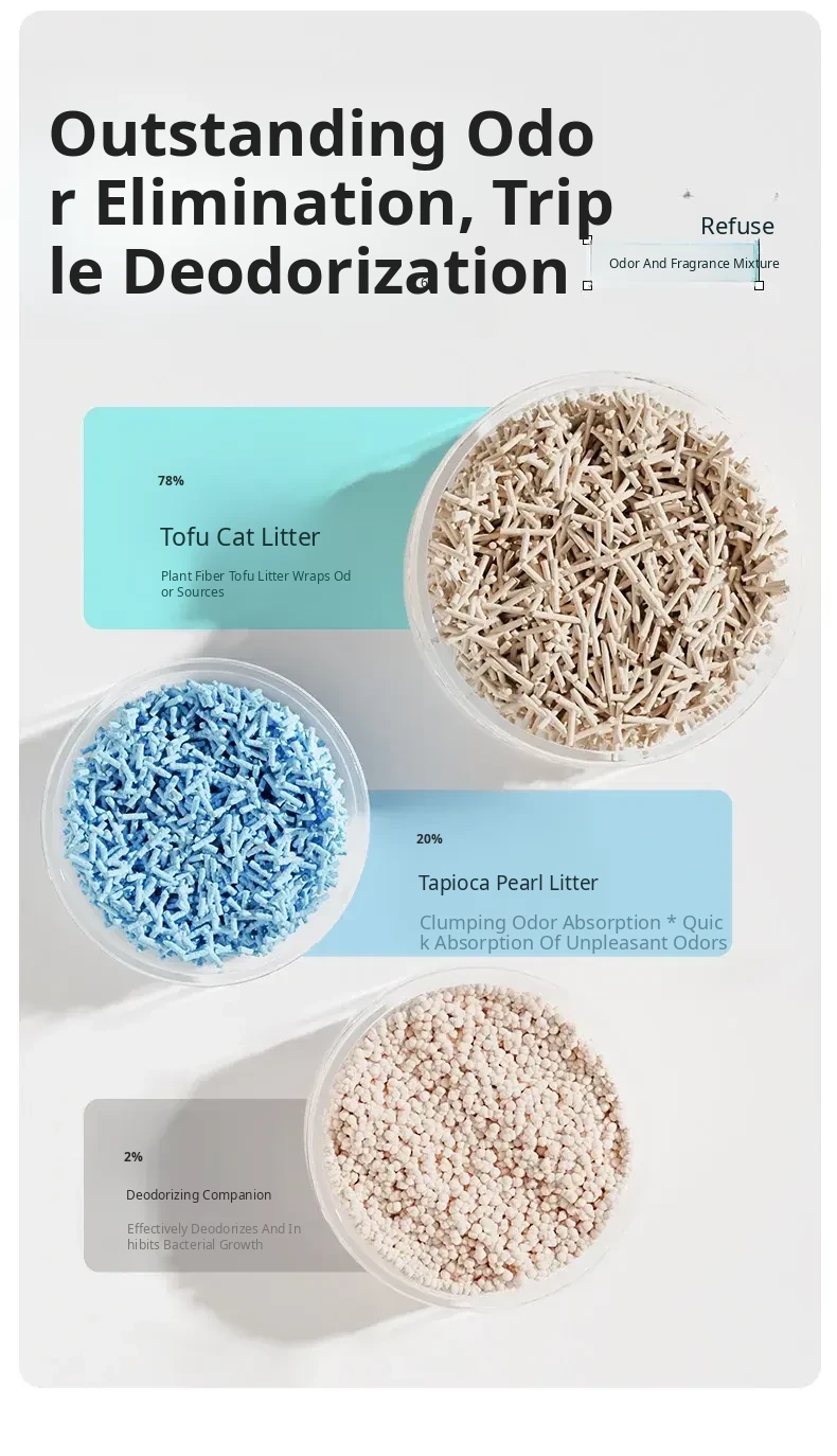 Odor-Controlled Clumping Tofu Cat Litter with Cassava - Low Dust, Super Absorbent, Non-Stick Bottom, Perfect for Your Feline Friends!