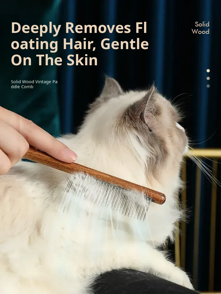 Wide-Tooth Comb, Specifically for Long-Haired Cats (Imported Natural Wood Pin Brush)