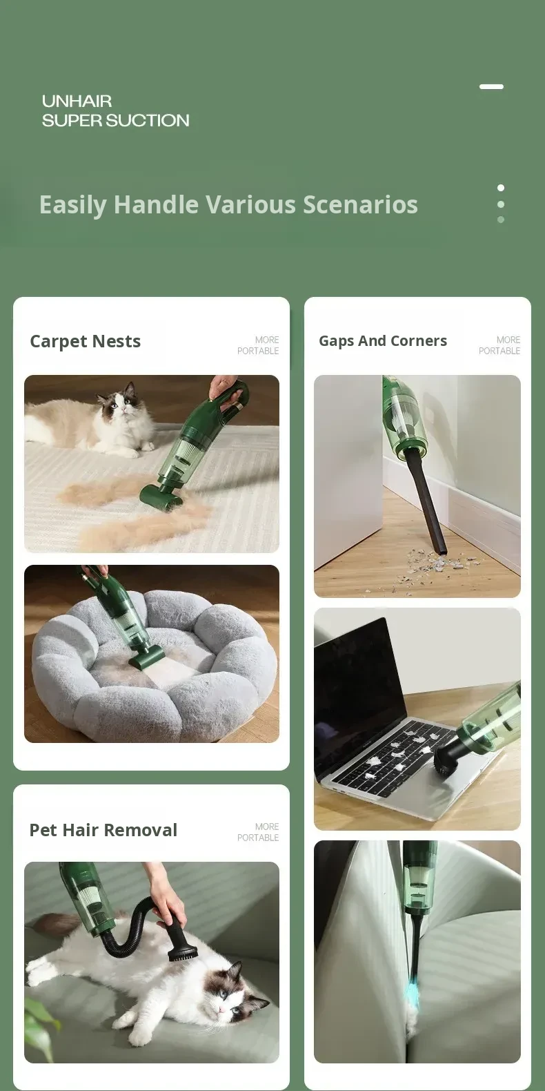 Upgraded Hurricane Cat Hair Suction - Powerful Suction, Wireless Charging Model