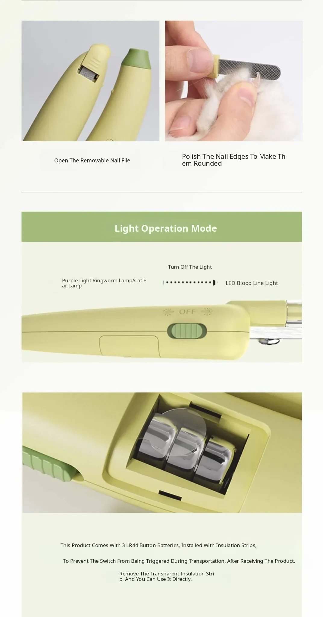 Tian Green Led Dual Lights [Blood Line Lamp + Cat Ringworm Lamp] [Anti-Cut, No Firewood Splitting, Anti-Flying Armor] Comes with File + Battery