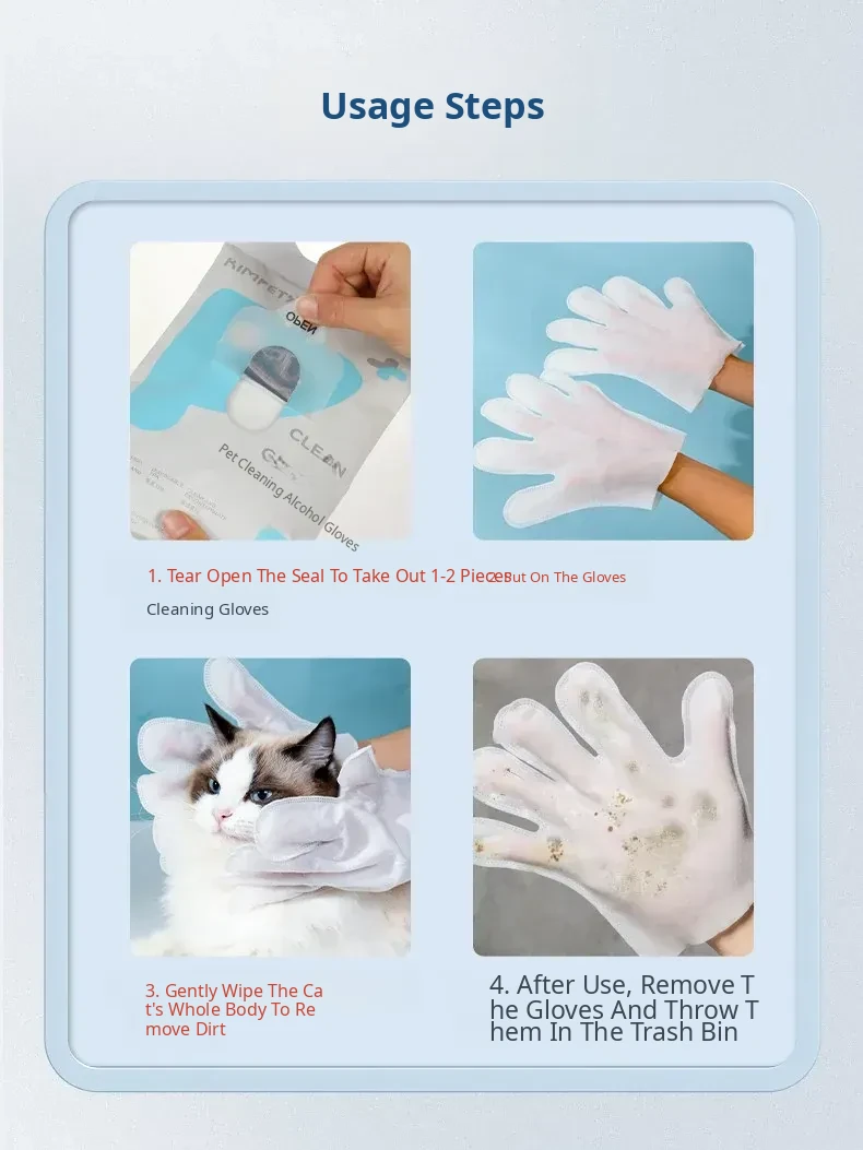 Pet No-Rinse Cleaning Gloves for Dogs and Cats – Spa Bathing Wipes with Antibacterial and Deodorizing Properties, Perfect for Cleaning Paws and Bottoms!