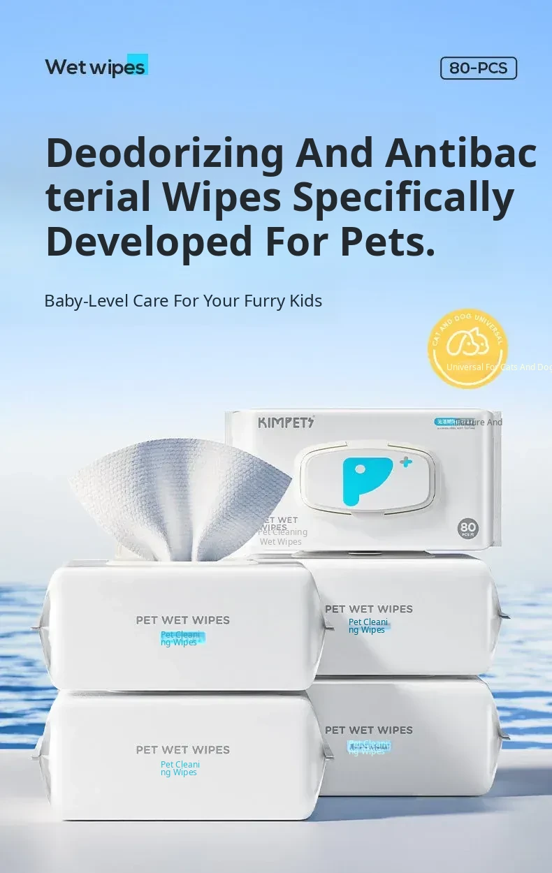Pet Wet Wipes for Cats and Dogs - Cleaning, Antibacterial, No-Rinse, Perfect for Paws, Bottoms, Bathing, and Tear Stain Removal - Gentle and Safe for Your Furry Friends!