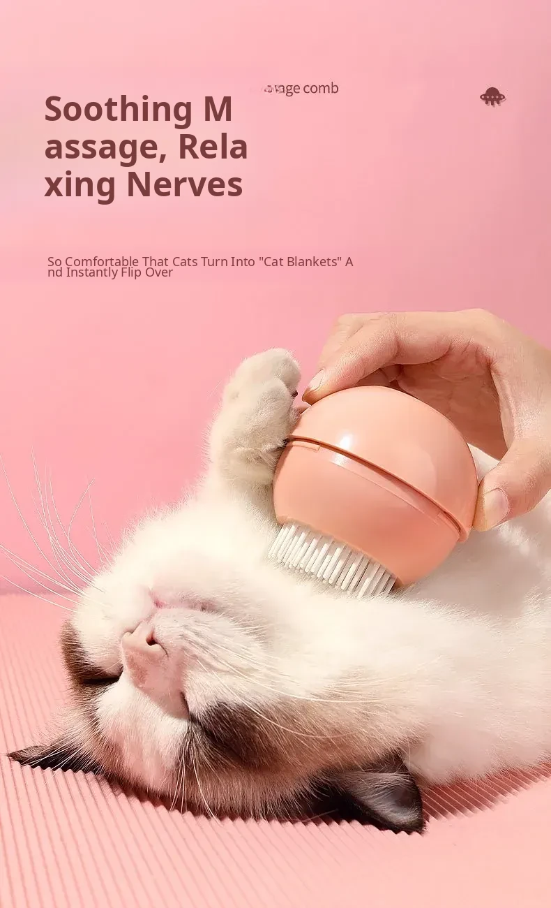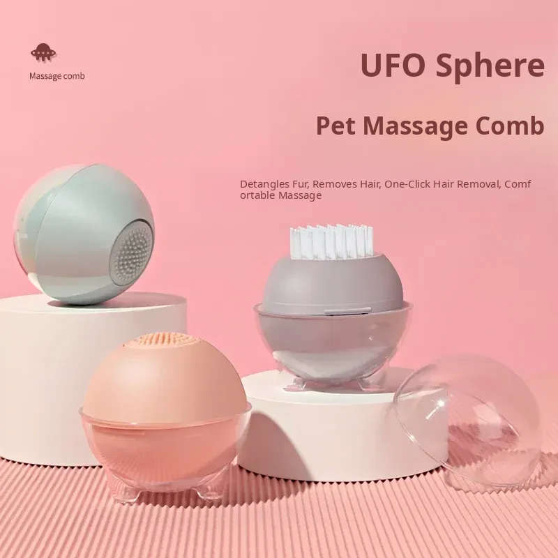 Round Pet Hair Removal Brush for Cats and Dogs - De-shedding & Massaging Comb for Kittens and Puppies - Essential Grooming Tool to Keep Your Pet's Coat Healthy and Shiny