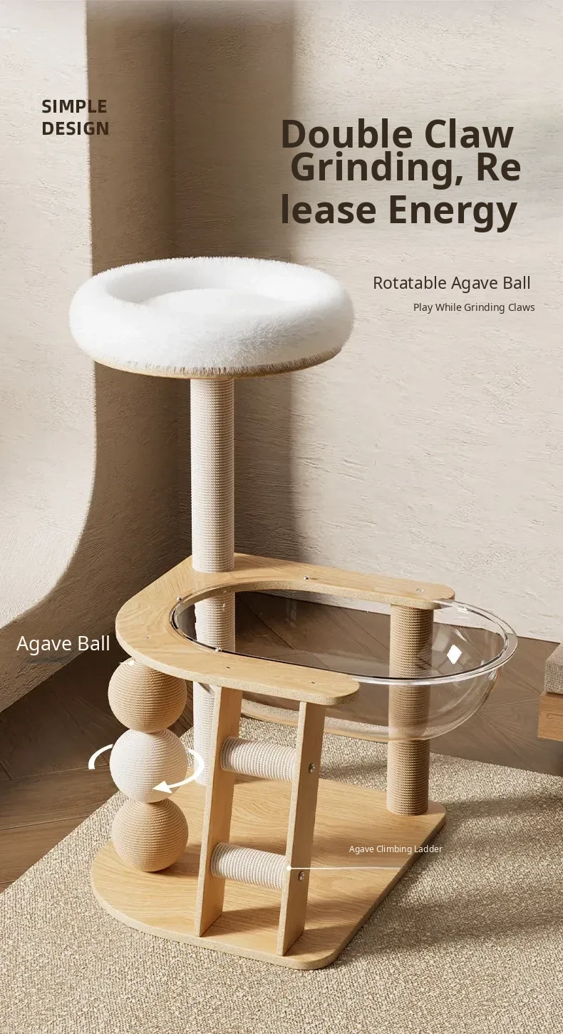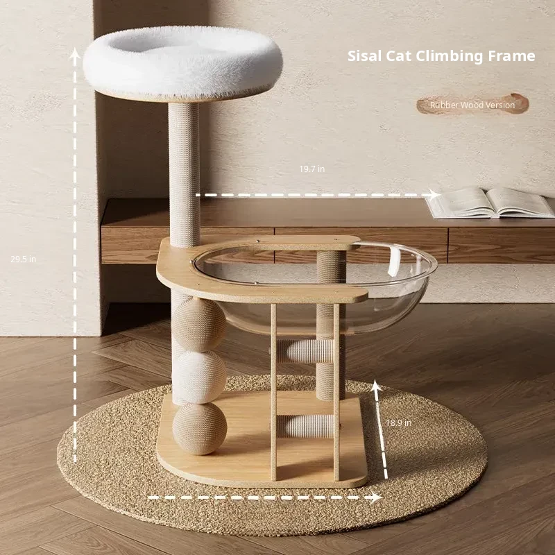 Sisal Cat Climbing Frame Cat Nest [Natural Oak] Sleeping and Playing All in One