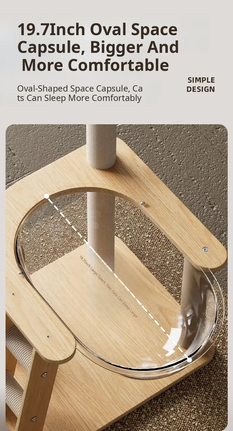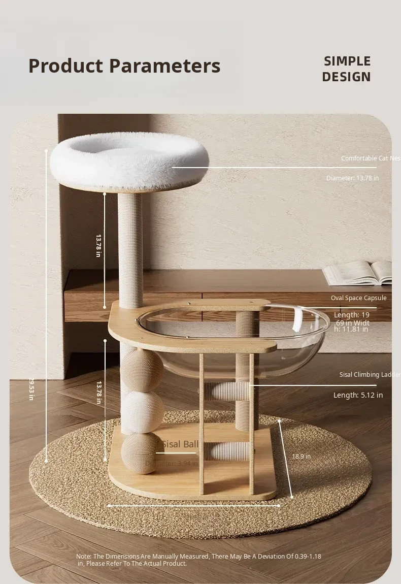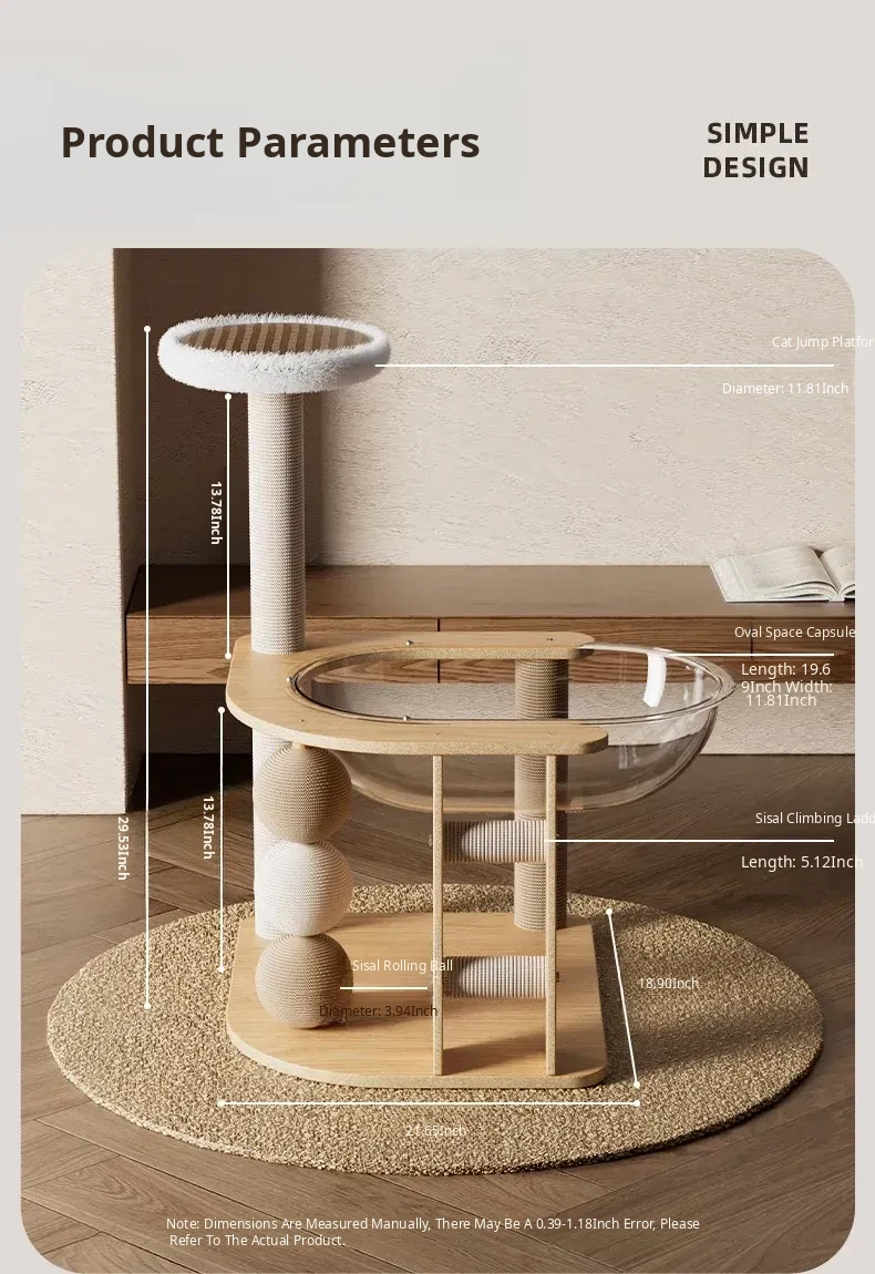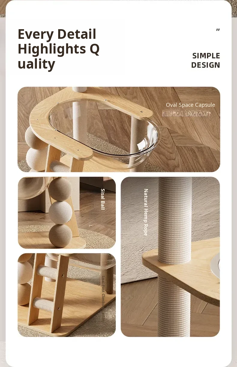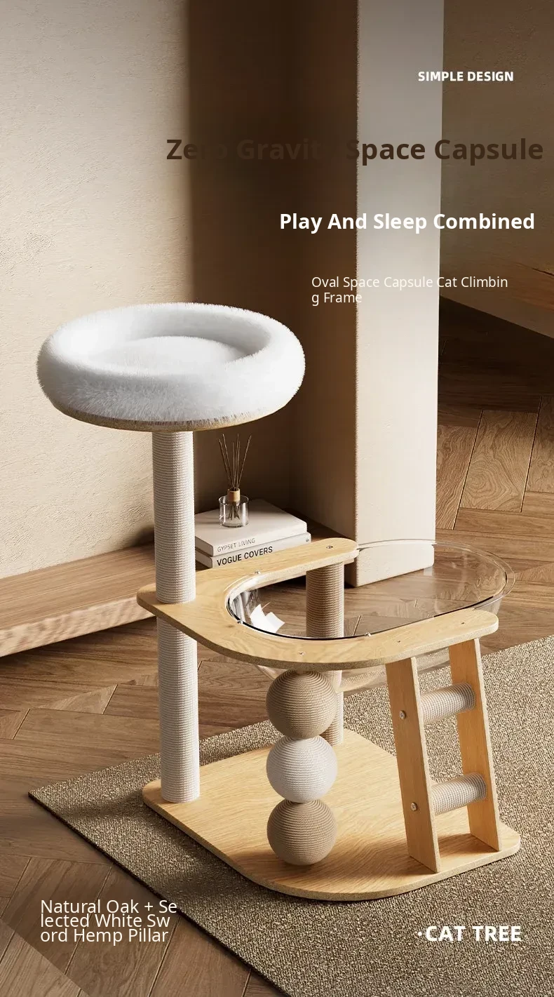 Zero Gravity Space Capsule Cat Climbing Frame Four Seasons [Natural Oak] Play and Sleep All in One