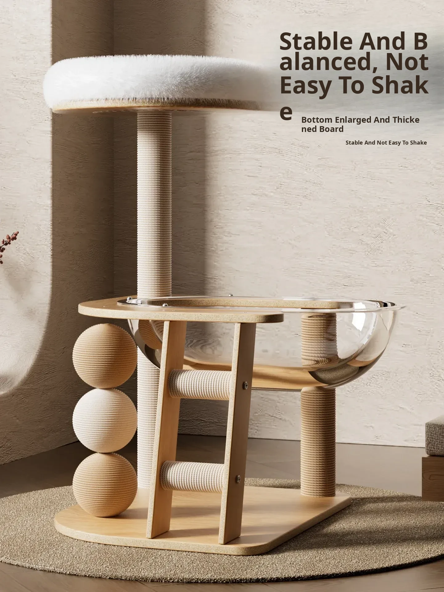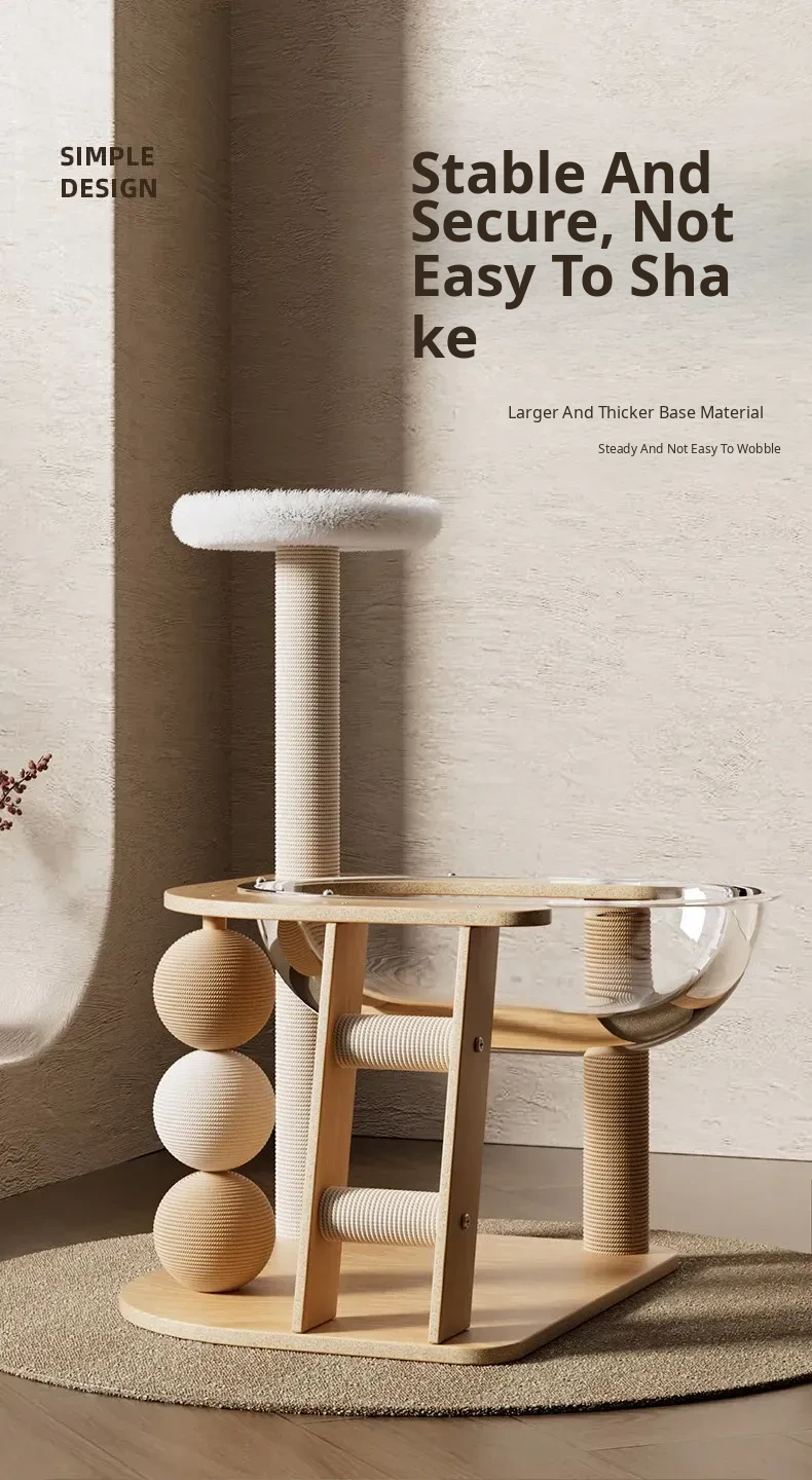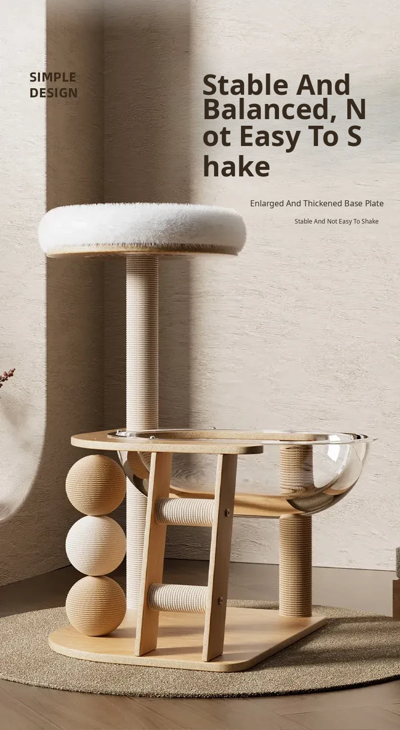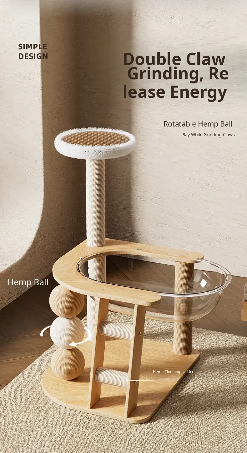 Zero Gravity Space Capsule Cat Climbing Frame Four Seasons [Natural Oak] Play and Sleep All in One