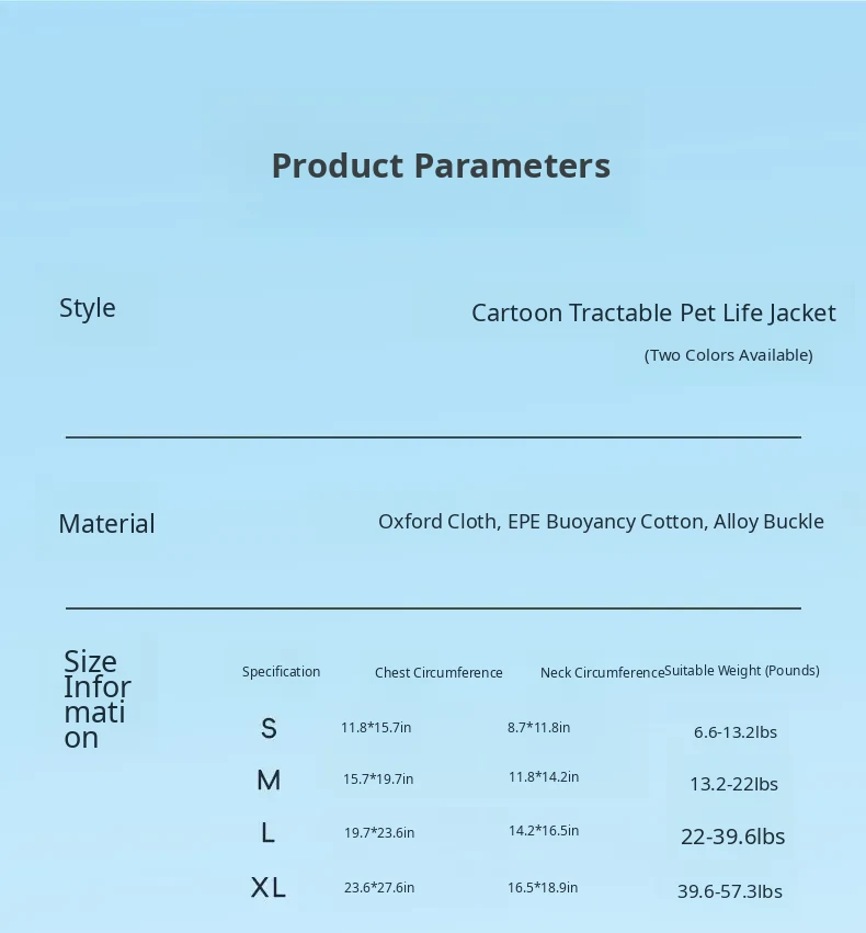 L (Bust 19.69in*23.62in, Neck 14.17in*16.54in) Recoinended 5-9kg