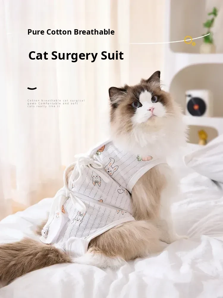 Breathable Cotton Cat Recovery Suit - Post-Surgery Wear for Spayed Females & Neutered Males, Anti-Lick Design for Comfort, Ideal for Weaning and Convalescence, Keep Your Pet Safe and Stylish!