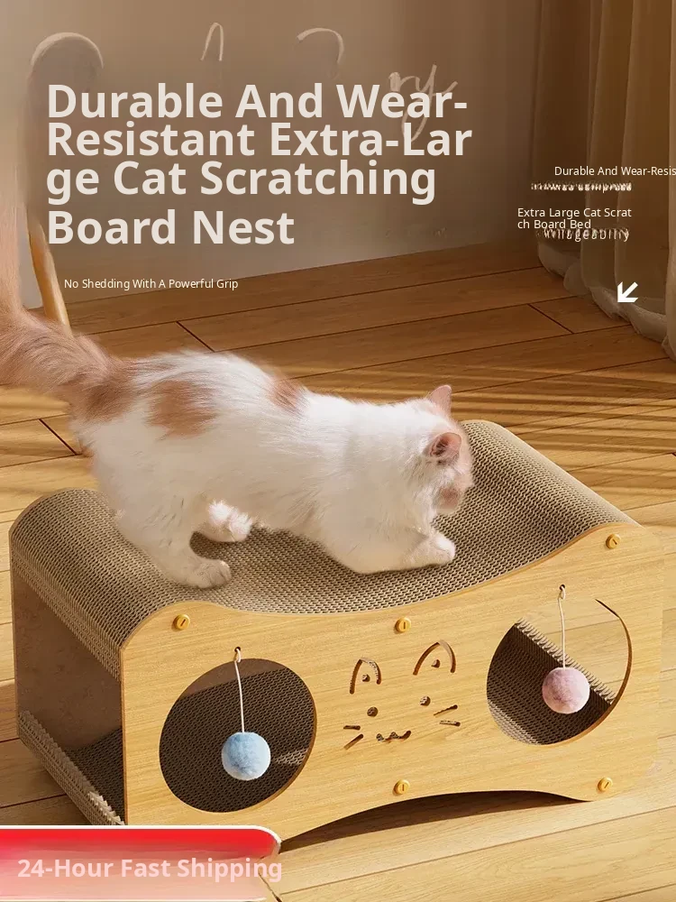 Dual-Layer Cat Scratching Post and Cozy Cat House - Durable, No Shedding, Fun and Engaging Cat Toy for Playful Kittens - Vertical Cat Climbing Tower for Endless Entertainment!