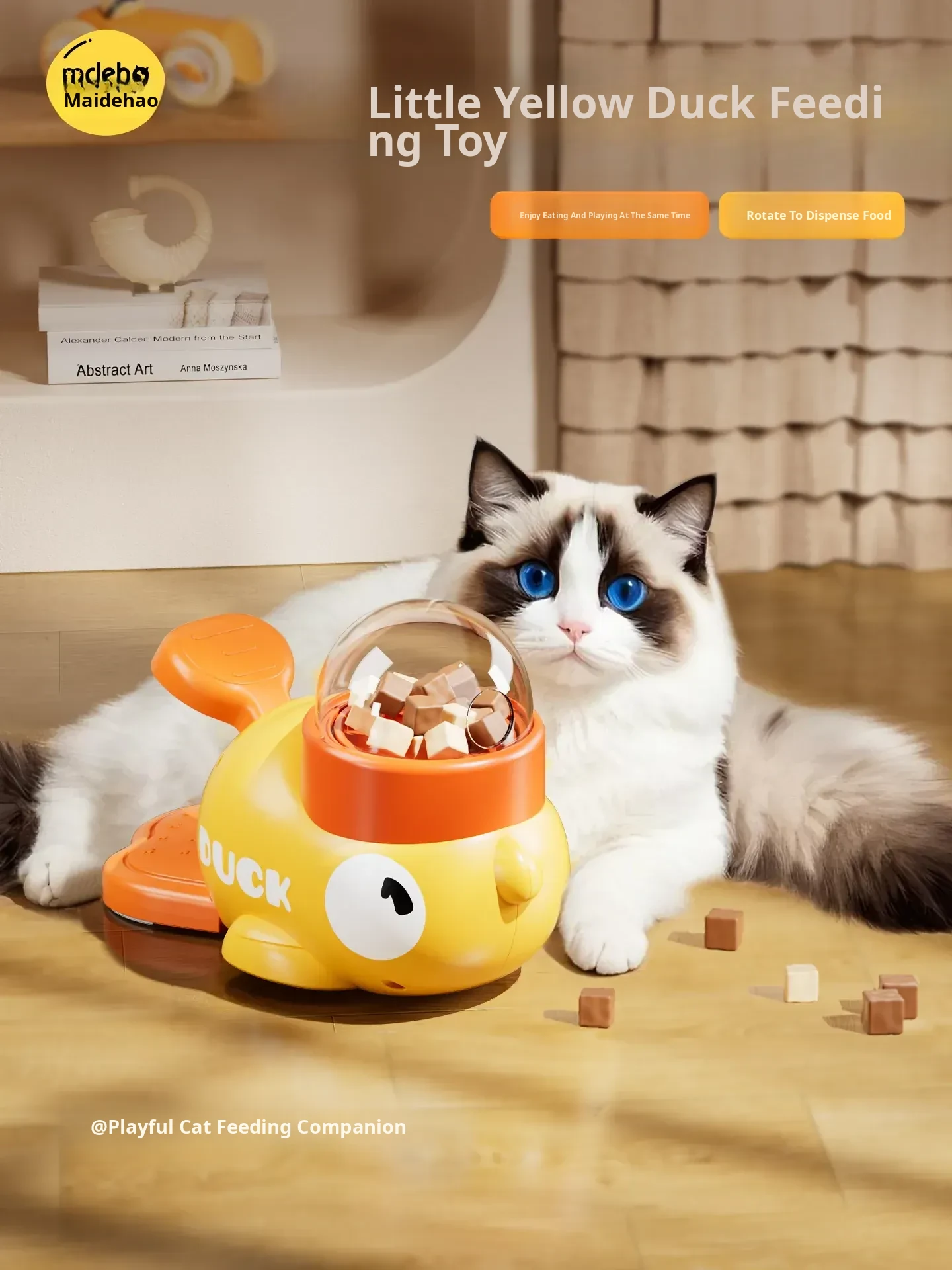Interactive Cat Toy - Yellow Duck Treat Dispenser for Cats and Dogs, Fun Freeze-Dried Snack Launcher, Perfect for Keeping Your Pet Engaged and Entertained!