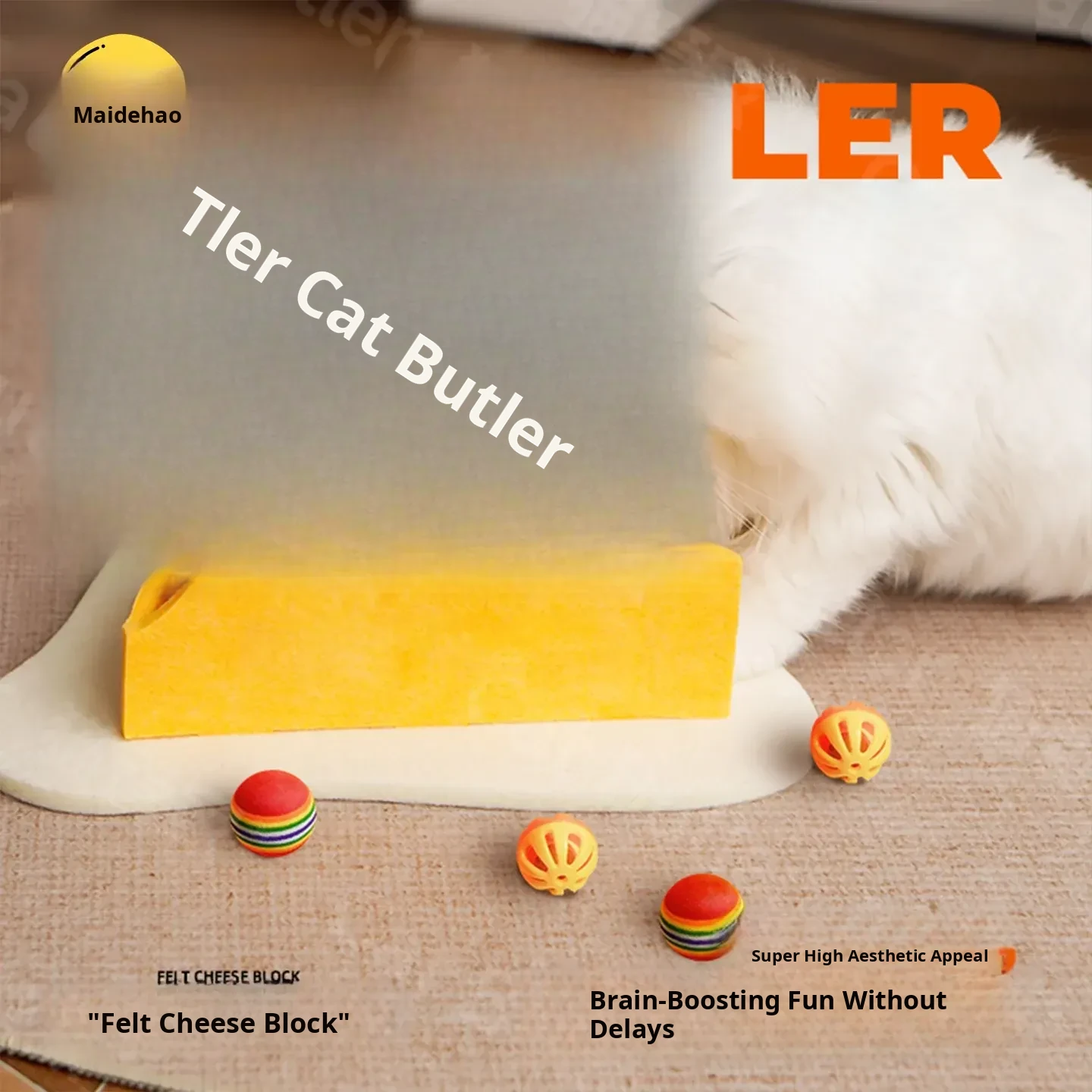Cheese Box Cat Toy - Self-Entertainment, Durable and Scratch-Resistant, No Shedding! Features Felt, Bell Balls, and Interactive Wand for Endless Fun and Clawing Delight! Perfect for Keeping Your Feline Friend Engaged!