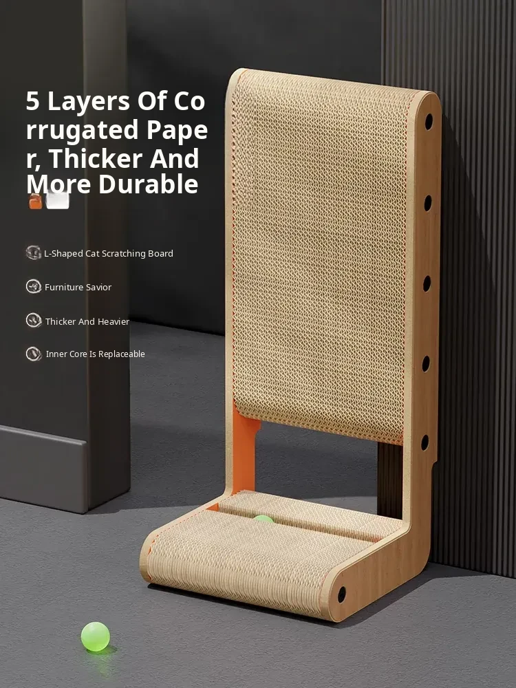Durable L-Shaped Cat Scratching Post & Bed Combo - Large Corrugated Cardboard Cat Scratcher, No Shedding, Ideal for Play and Rest for Your Feline Friend!