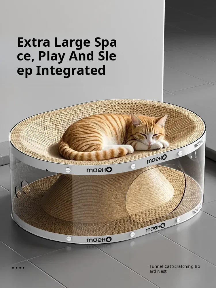 Durable Cat Scratching Post & Cozy Cat House Combo - Non-Shedding Corrugated Paper Tunnel for Cats - Double-Layer Design for Endless Fun and Relaxation!
