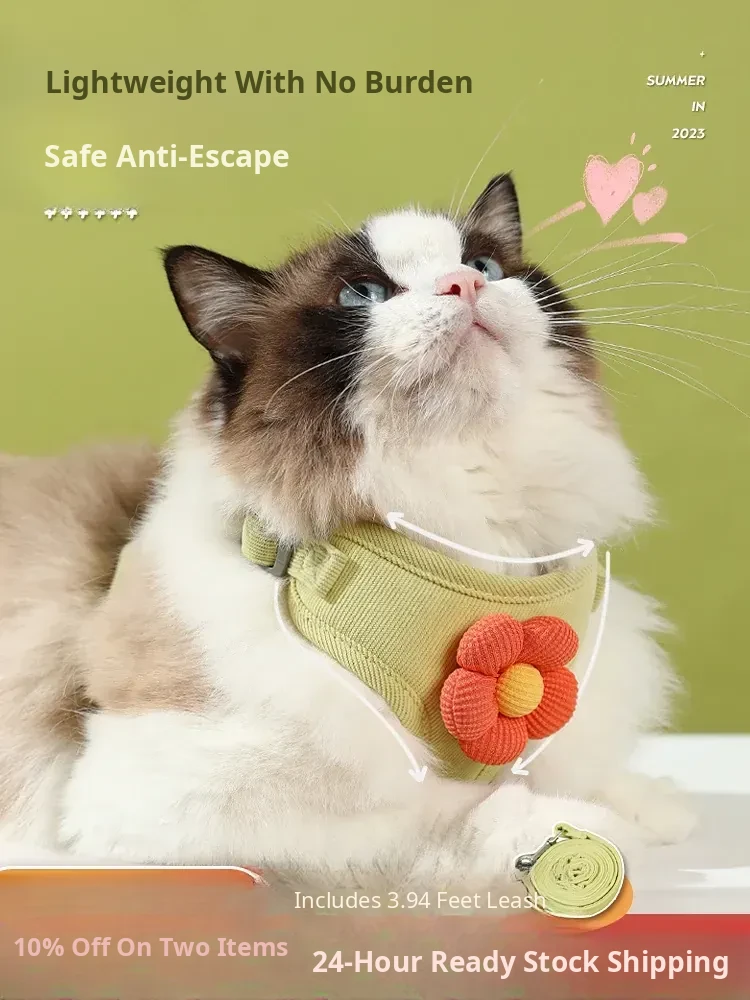 Anti-escape Cat Leash with Vest Harness - Ideal for Outdoor Adventures with Your Feline Friend, Perfect for Small Dogs and Cats, Stylish Floral Design