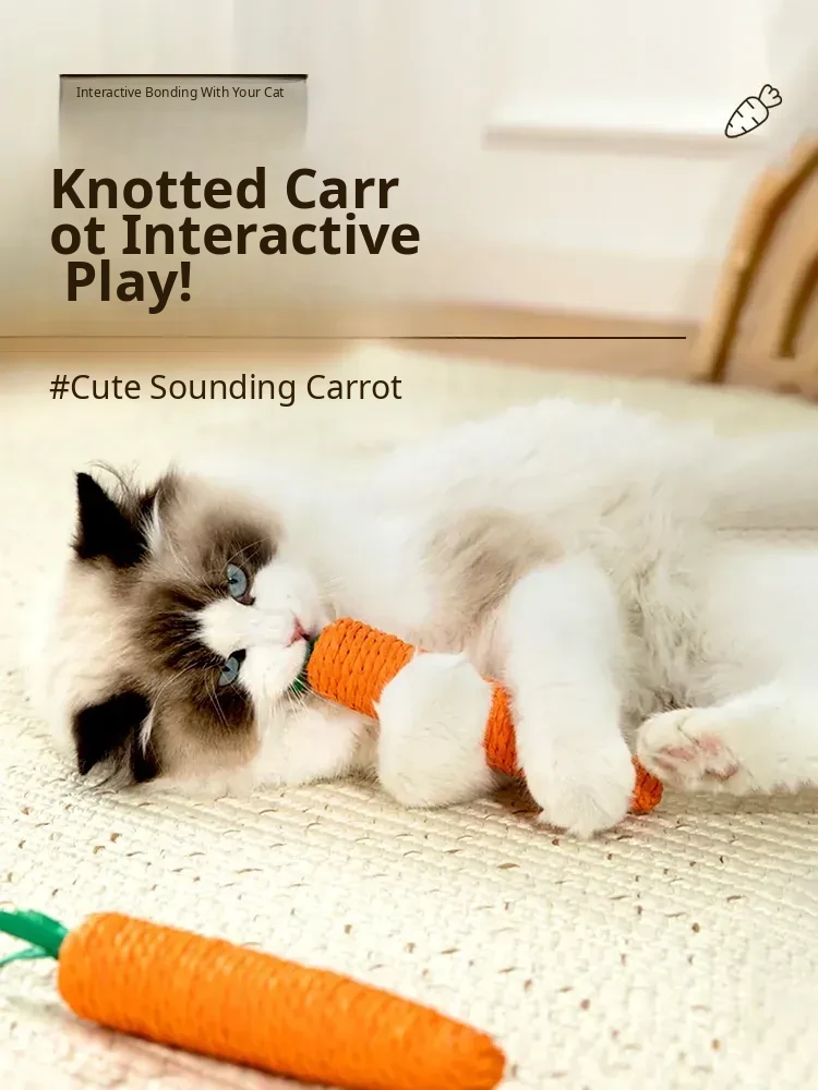Cute Carrot Cat Toy with Sound - Durable Chew Stick for Kittens, Perfect for Teething and Clawing, Keeps Your Feline Friends Entertained and Happy!