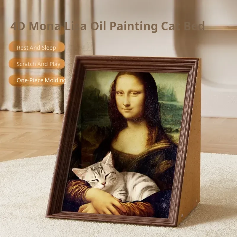 Mona Lisa Cat House & Scratching Post - Stylish Corrugated Cardboard Cozy Hideaway Inspired by the World-Famous Painting, Perfect for Play and Relaxation!