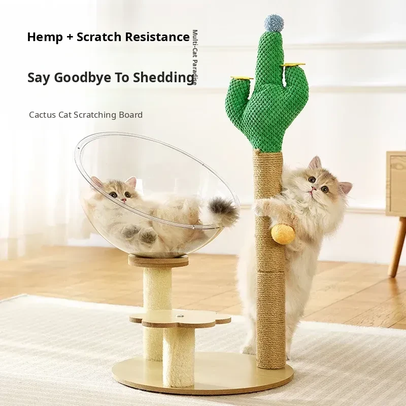 Durable Cat Scratching Post and Board Combo - Cactus Design, Compact Vertical Cat Scratcher for Endless Fun and Entertainment, No Shedding, Perfect for Small Spaces!