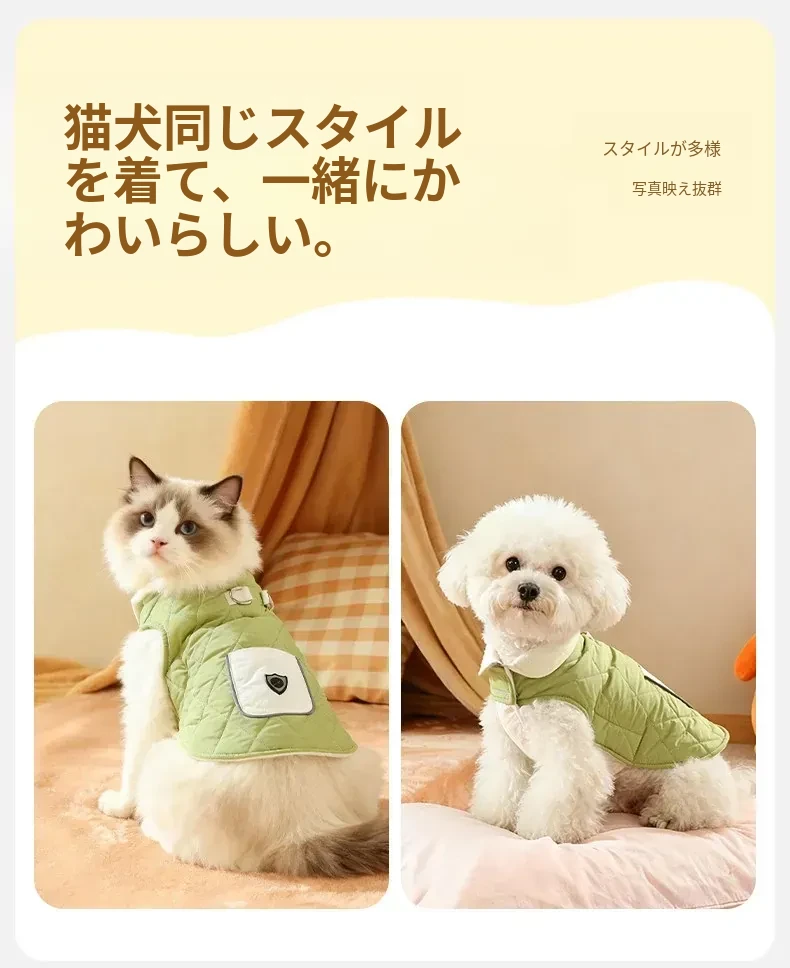 テディベア用厚手防水冬用犬服 - 小型犬向け2026年新作!寒い冬でも快適にお散歩できる、可愛いデザインのベスト。愛犬を暖かく守りつつ、リードもつけられる便利アイテム!