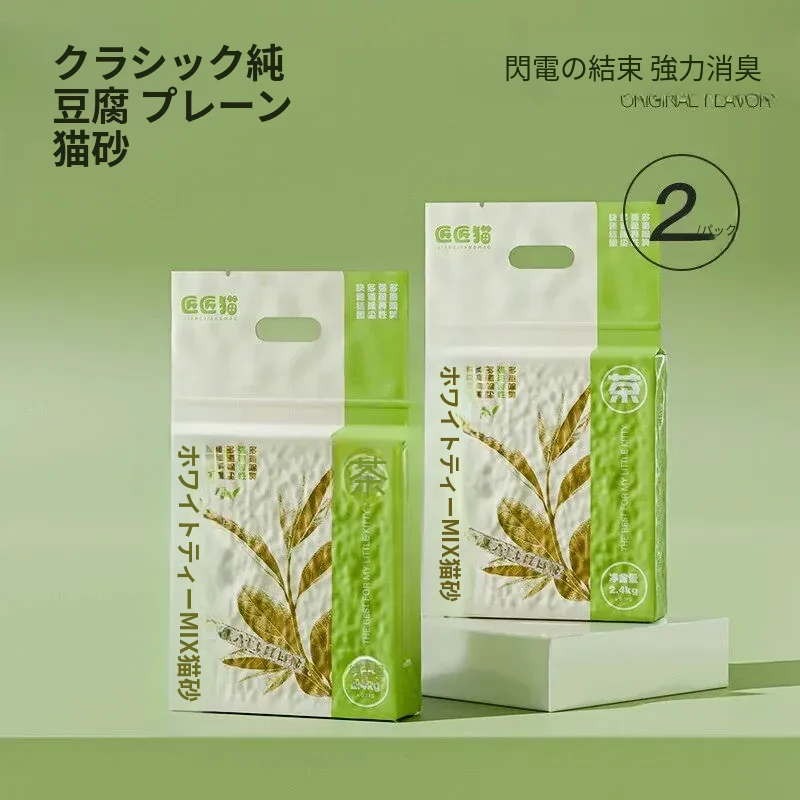 【瞬時吸水】輸入純豆腐キャット litter 2.4kg*2 トイレに流せる 真空除菌パッケージ