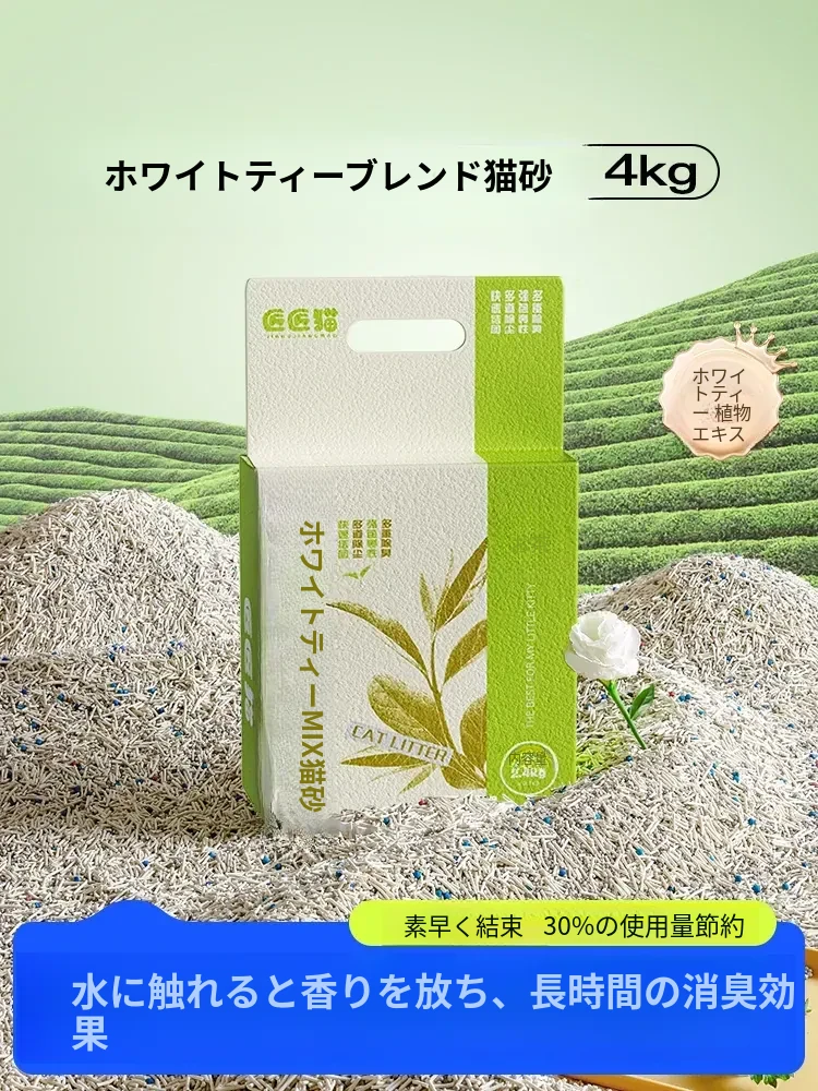 猫砂ホワイトティー混合豆腐砂・膨潤土・消臭・無塵・20kg真空パッケージ・送料無料!愛猫のための最適なトイレ環境を提供します!匂いを抑え、清潔感をキープ。