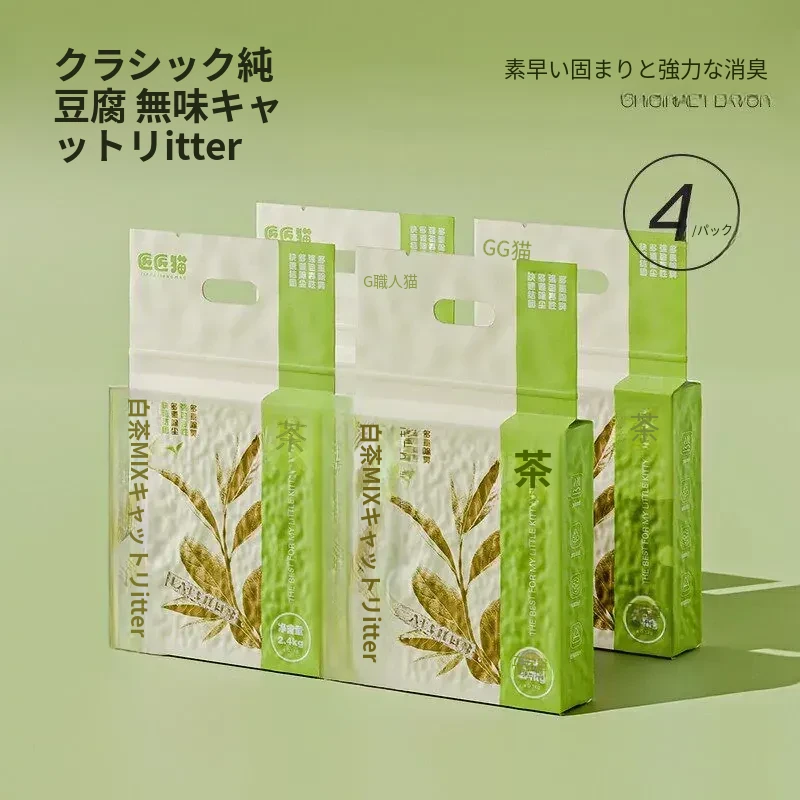 ❤【4パックまとめ買い】輸入純豆腐キャット litter 2.4kg*4 トイレに流せる 真空除菌パッケージ