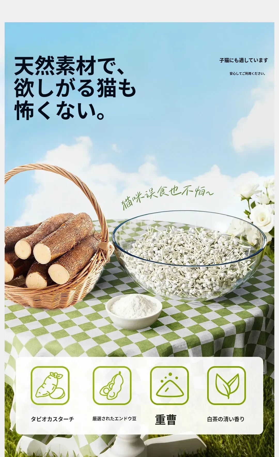【88VIP】キャッサバ製の豆腐猫砂 - ホワイトティー香る消臭効果!子猫や家庭用犬にも最適な植物由来の混合猫砂。お部屋を清潔に保ち、愛するペットの快適さをサポートします!