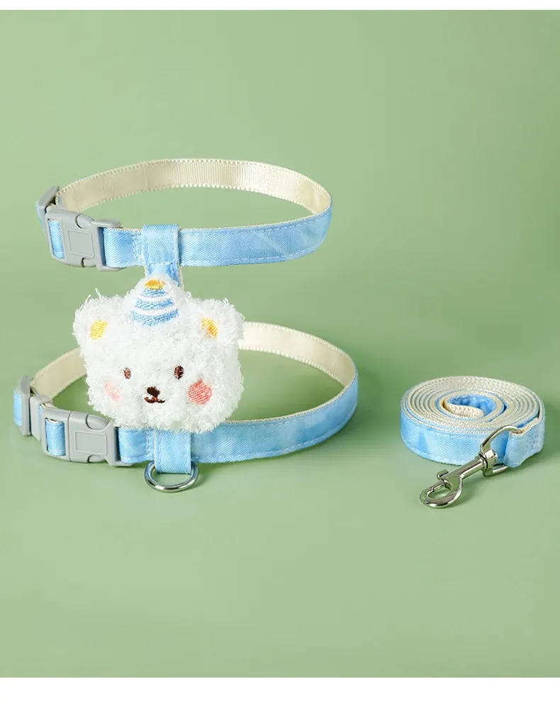 小熊胸背牽引紐【脱走防止】青色