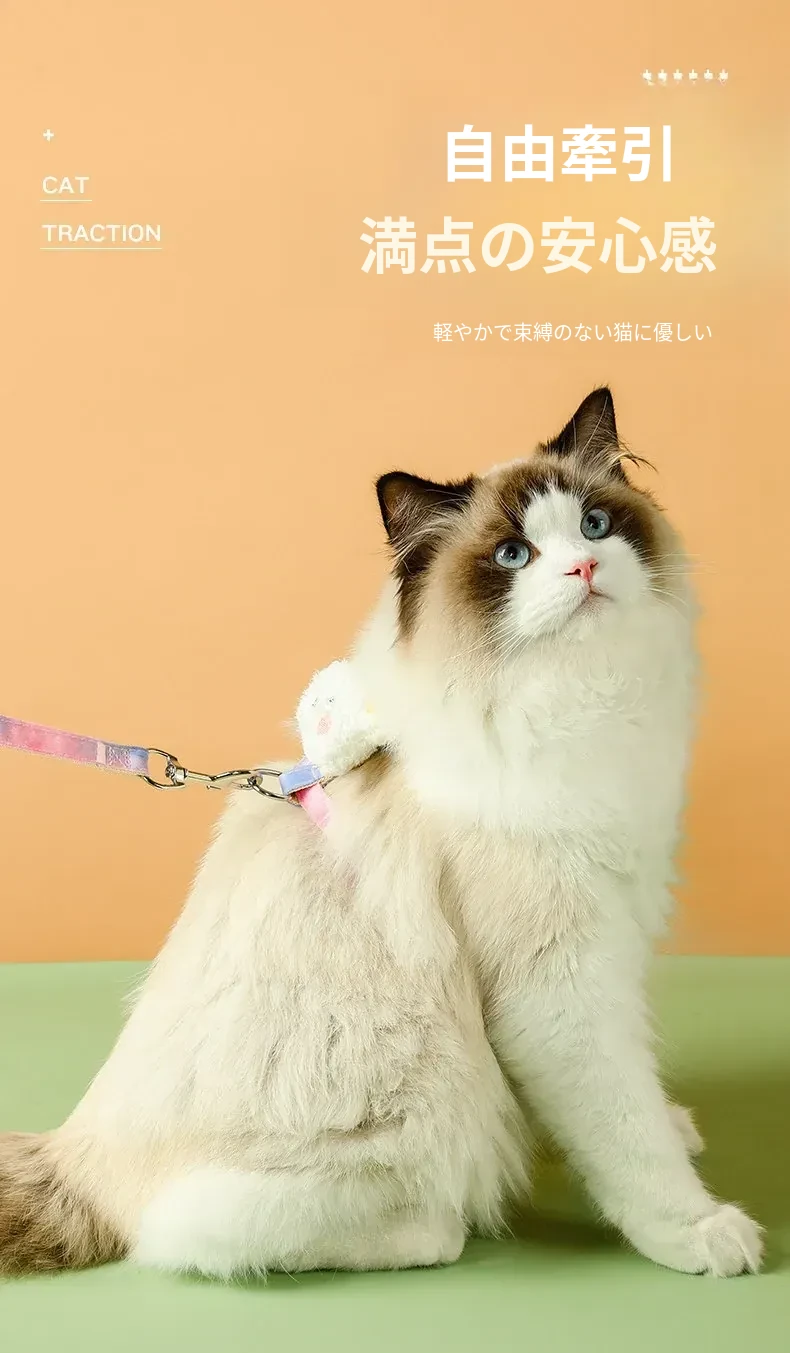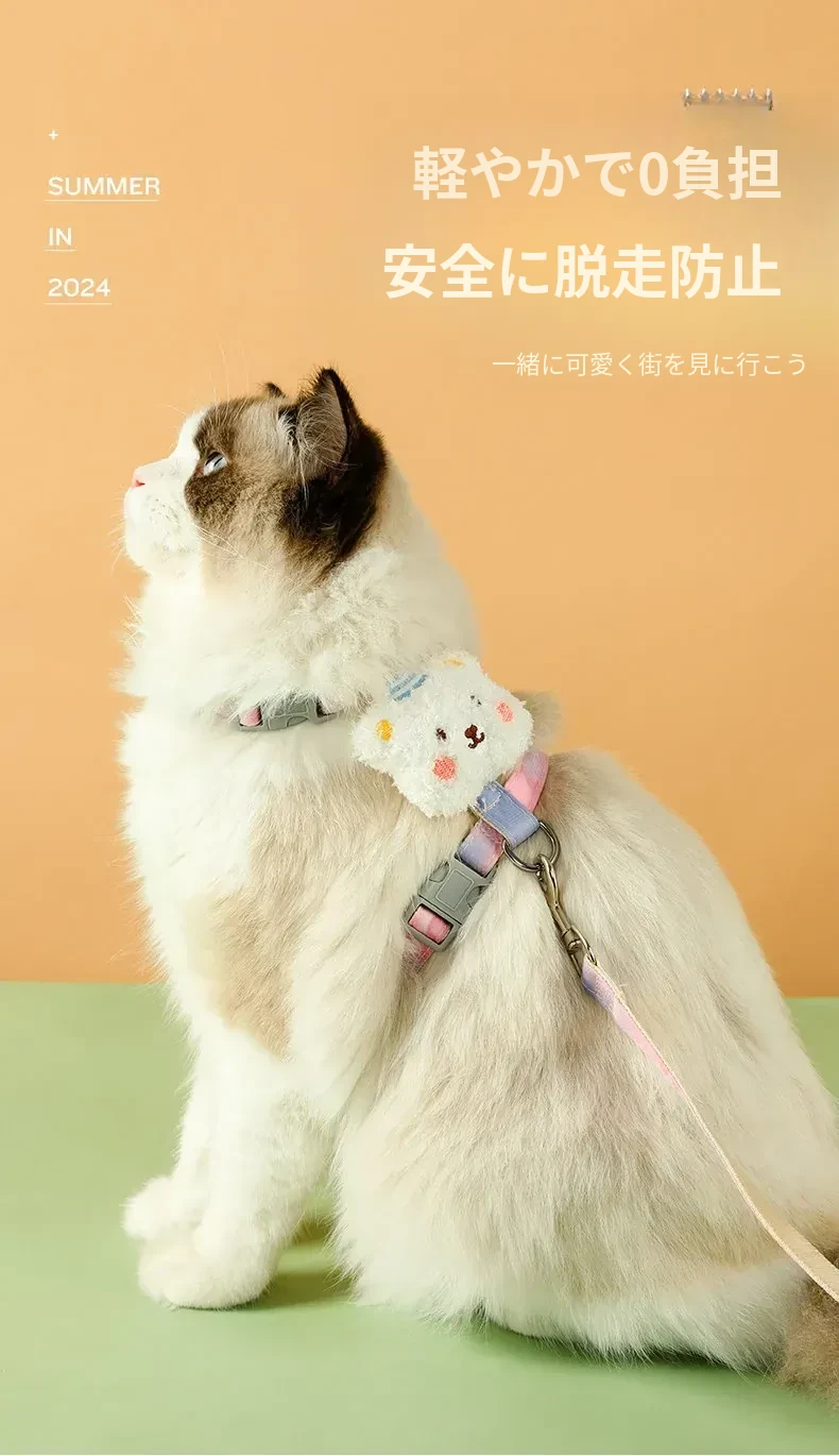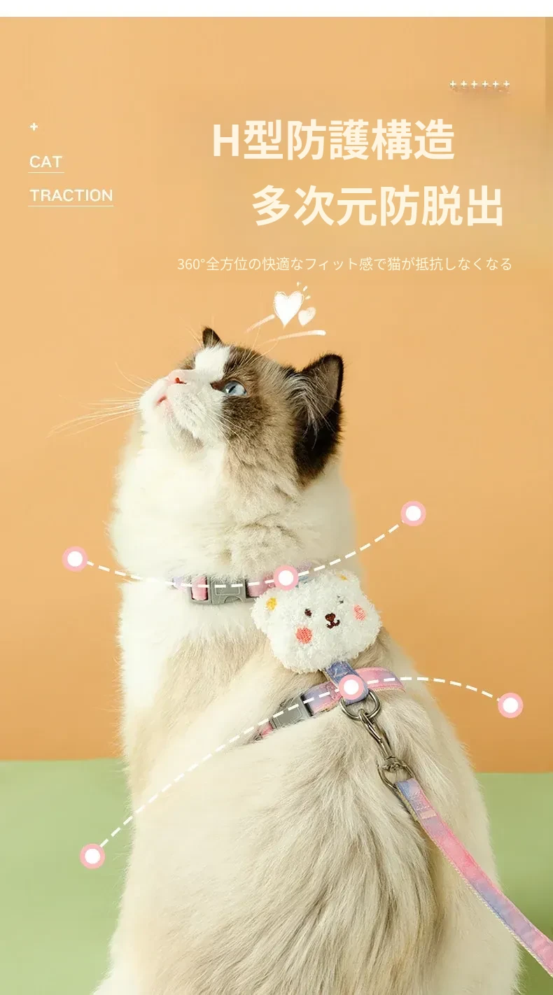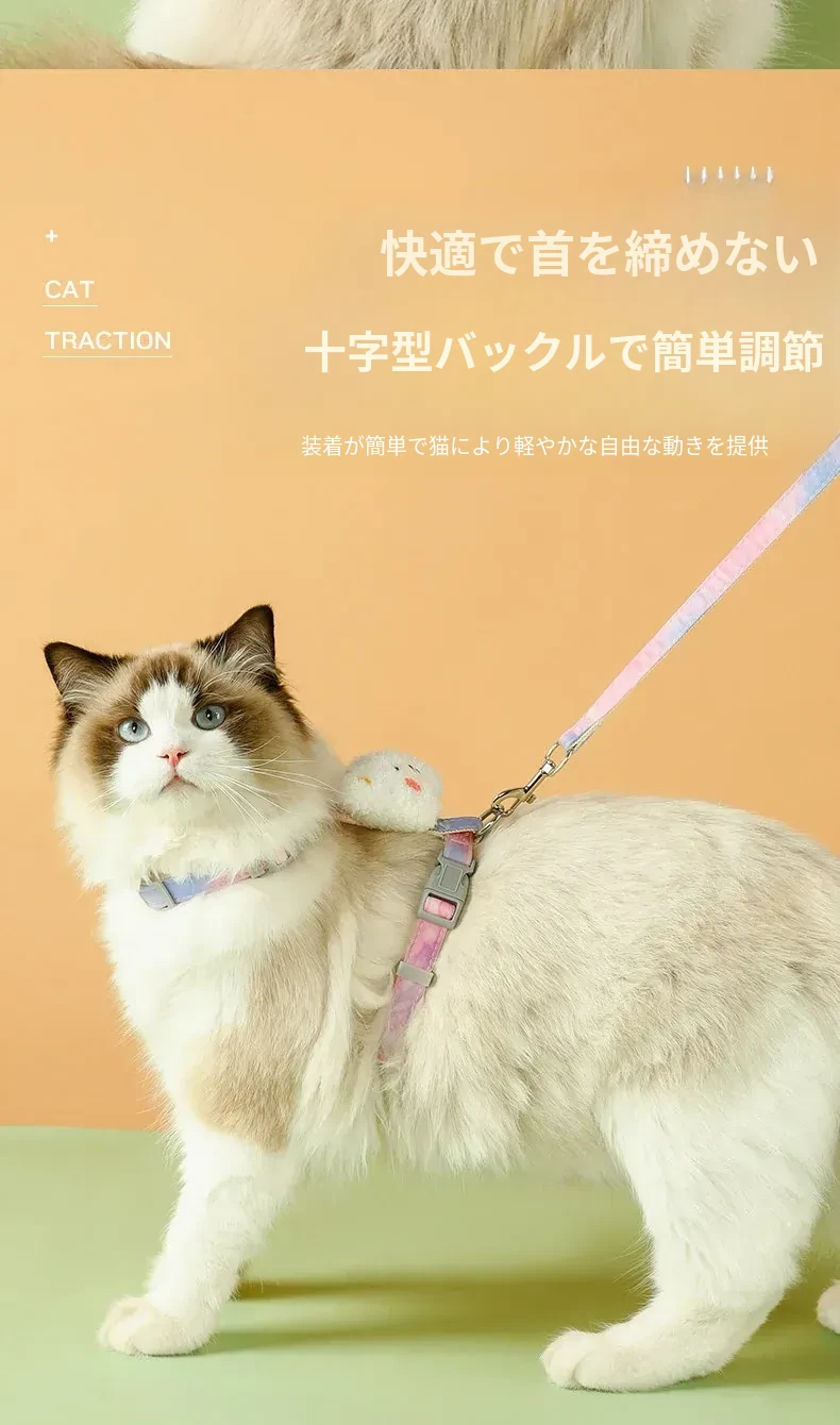 脱走防止!調整可能な猫用ハーネスとリードセット - 小型犬にも最適!安心してお出かけできるペット用グッズ。快適さとスタイルを兼ね備えた愛猫のための必須アイテム!