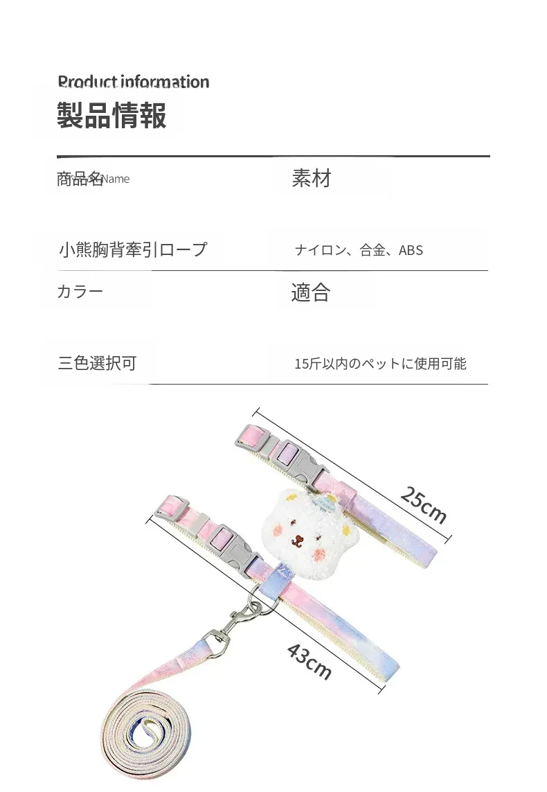 小熊胸背牽引紐【快適で締め付けない】オレンジピンク